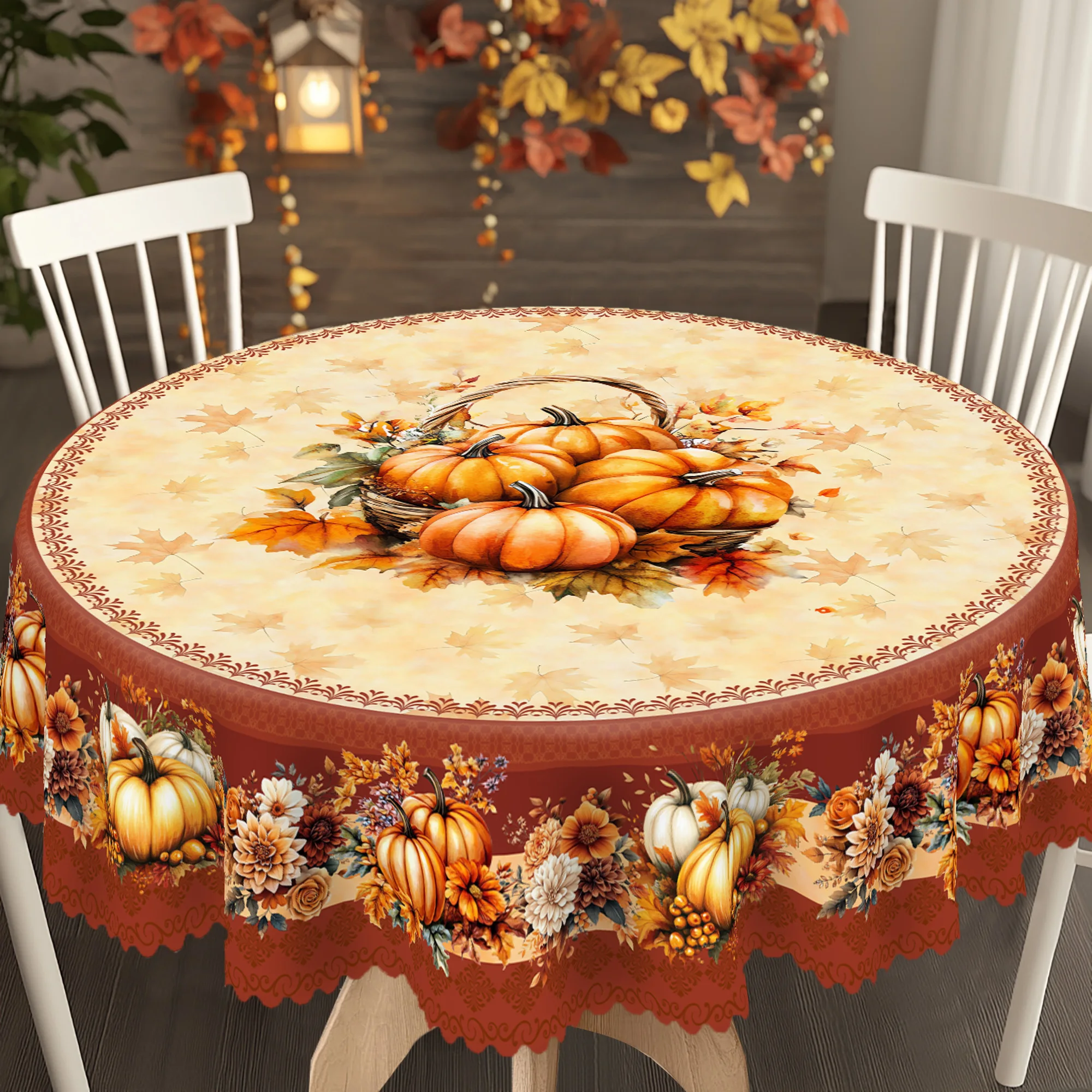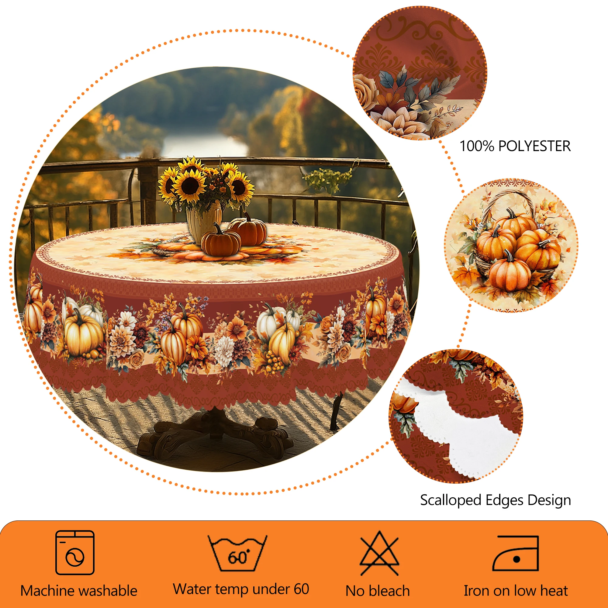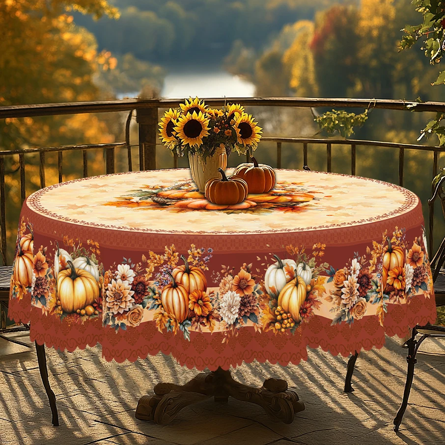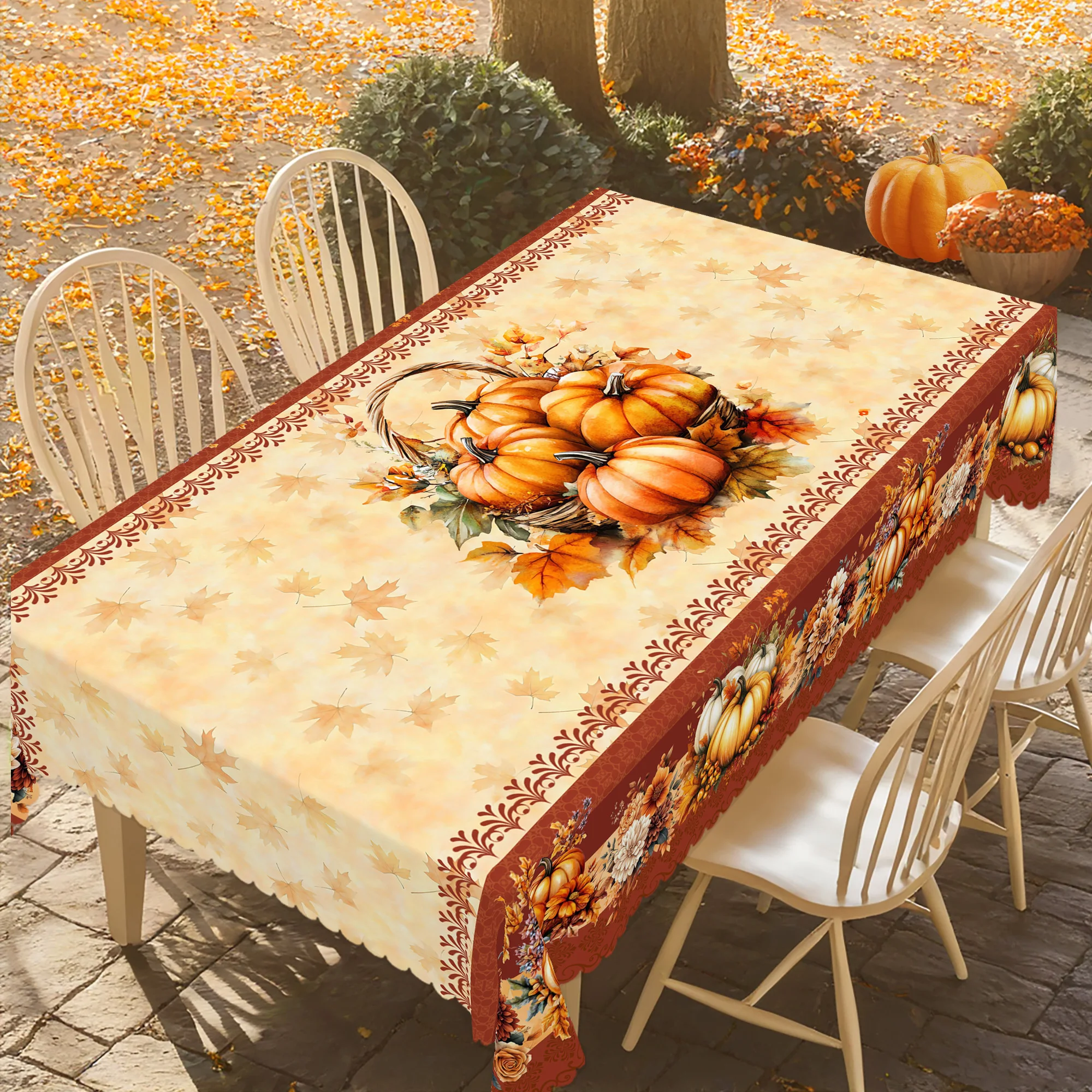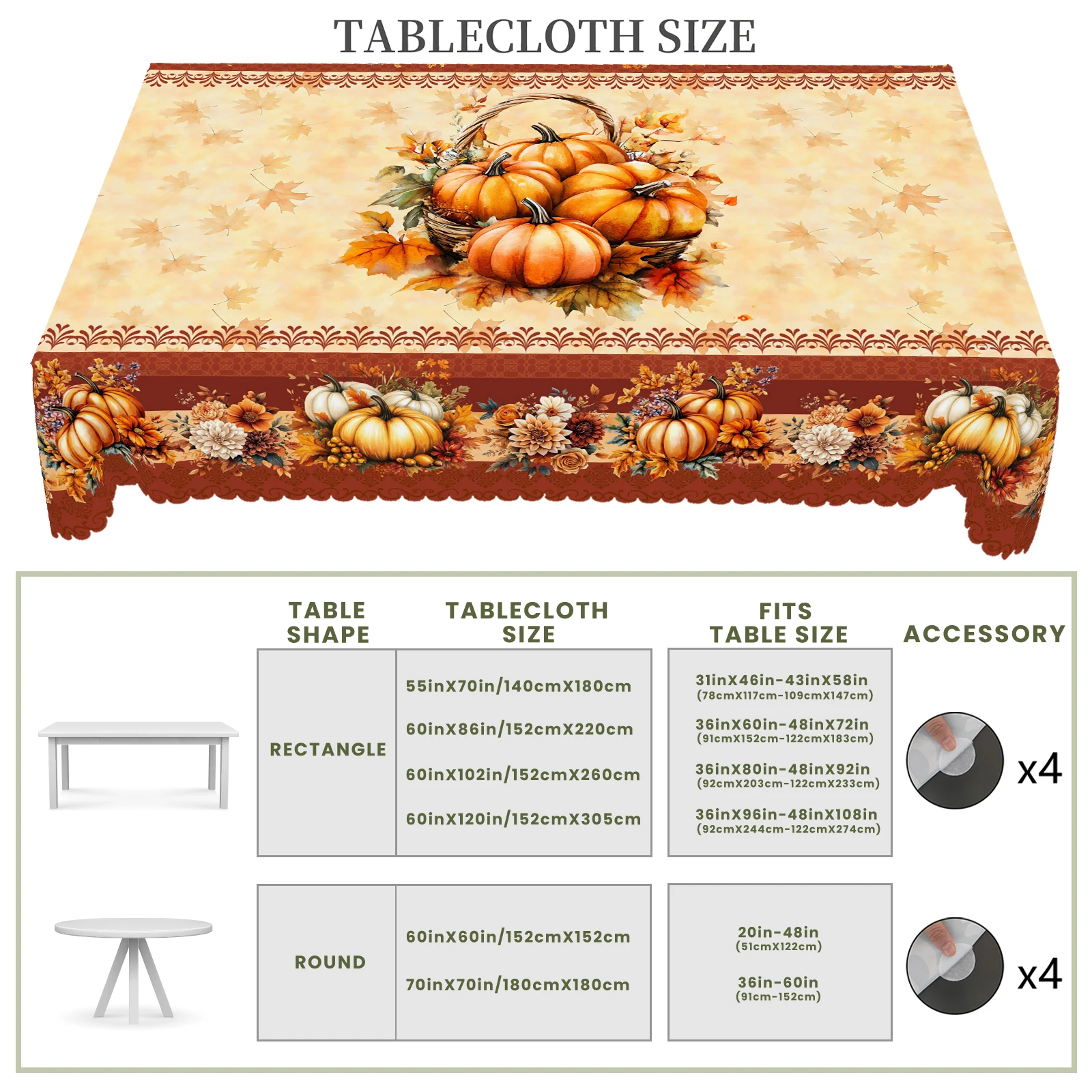 1 Piece of Thanksgiving Pumpkin Print Tablecloth, Available in Various Sizes, Autum Flower Pattern Printed Tablecloth, Thanksgiving Party Tablecloth Decoration, Suitable for Home Kitchen, Dining Room Terrace Indoor and Outdoo