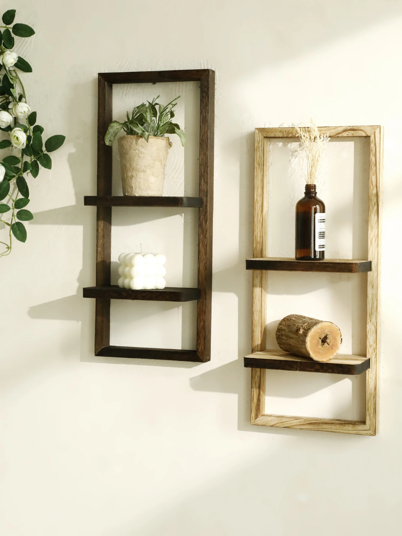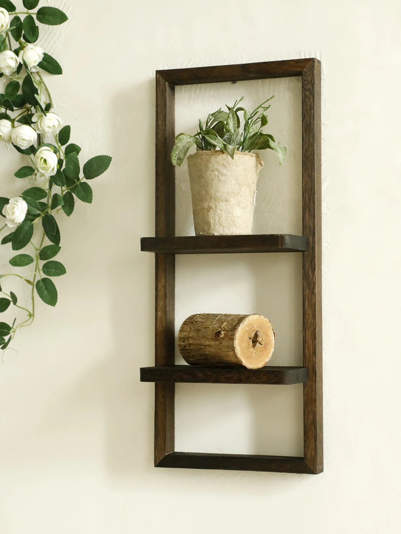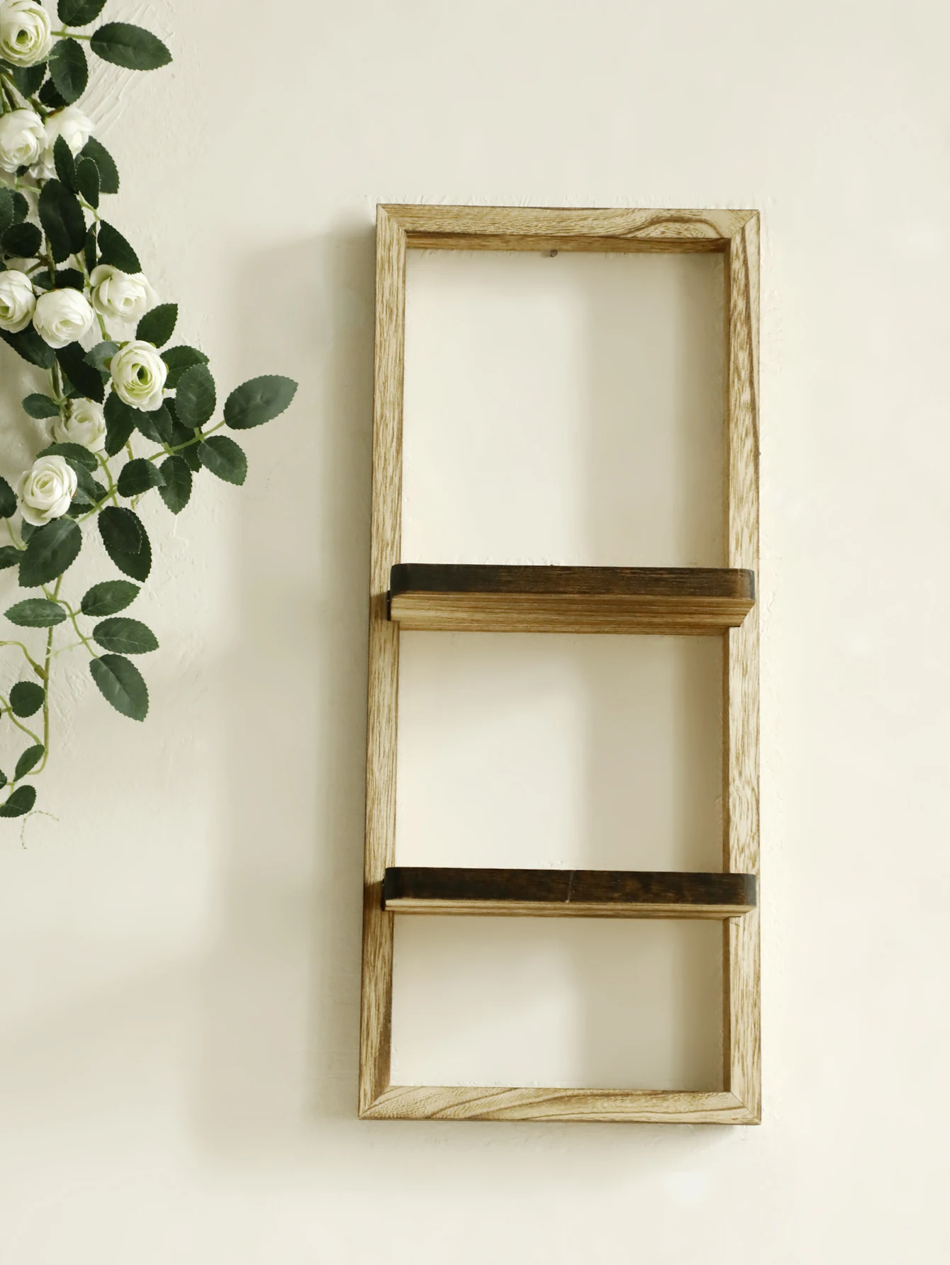 1pc Rustic Wooden Wall Shelves 2-tier Floating Shelf for Plants Decor Home Living Room Kitchen Bedroom Wall Mounted Display Rack