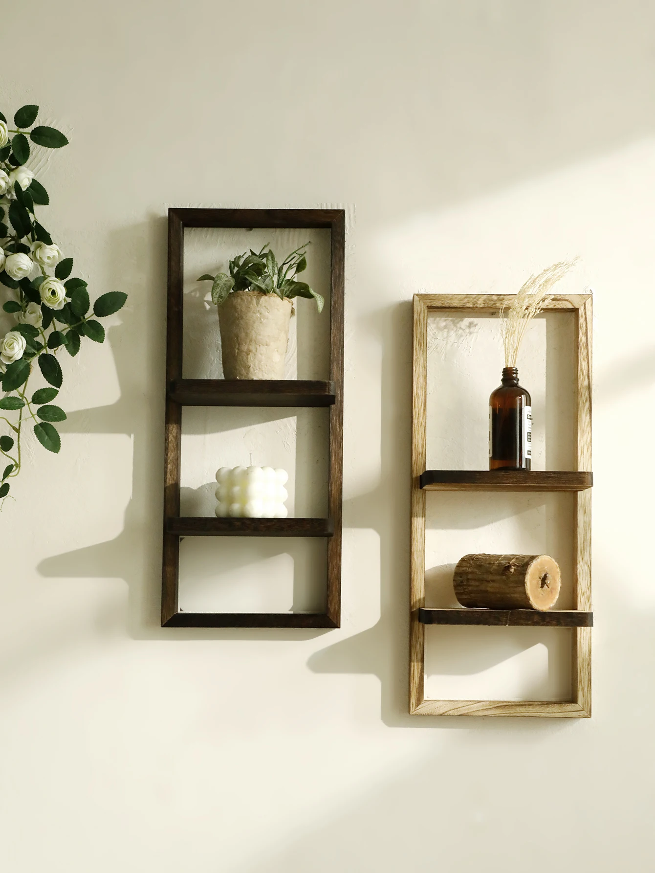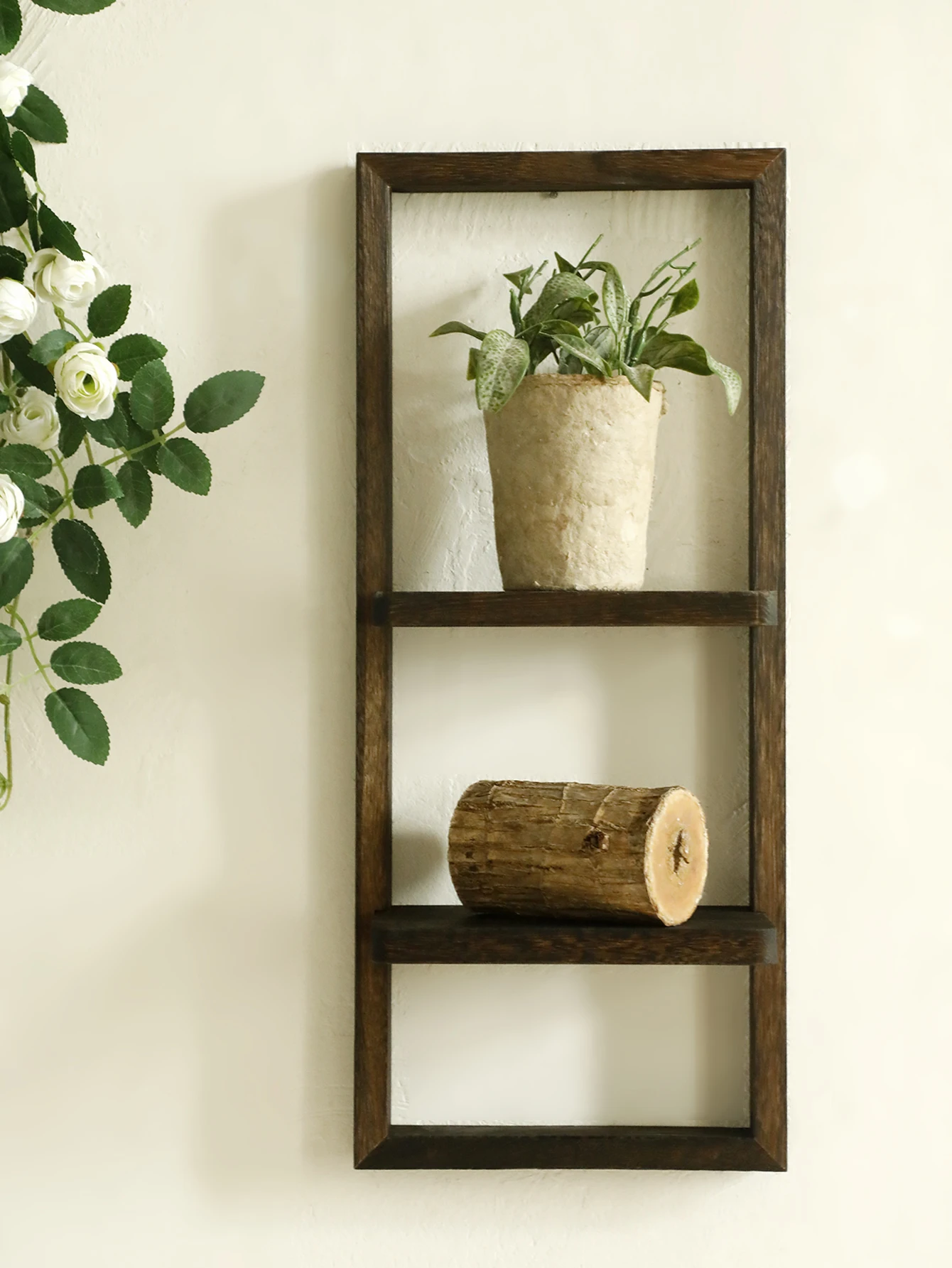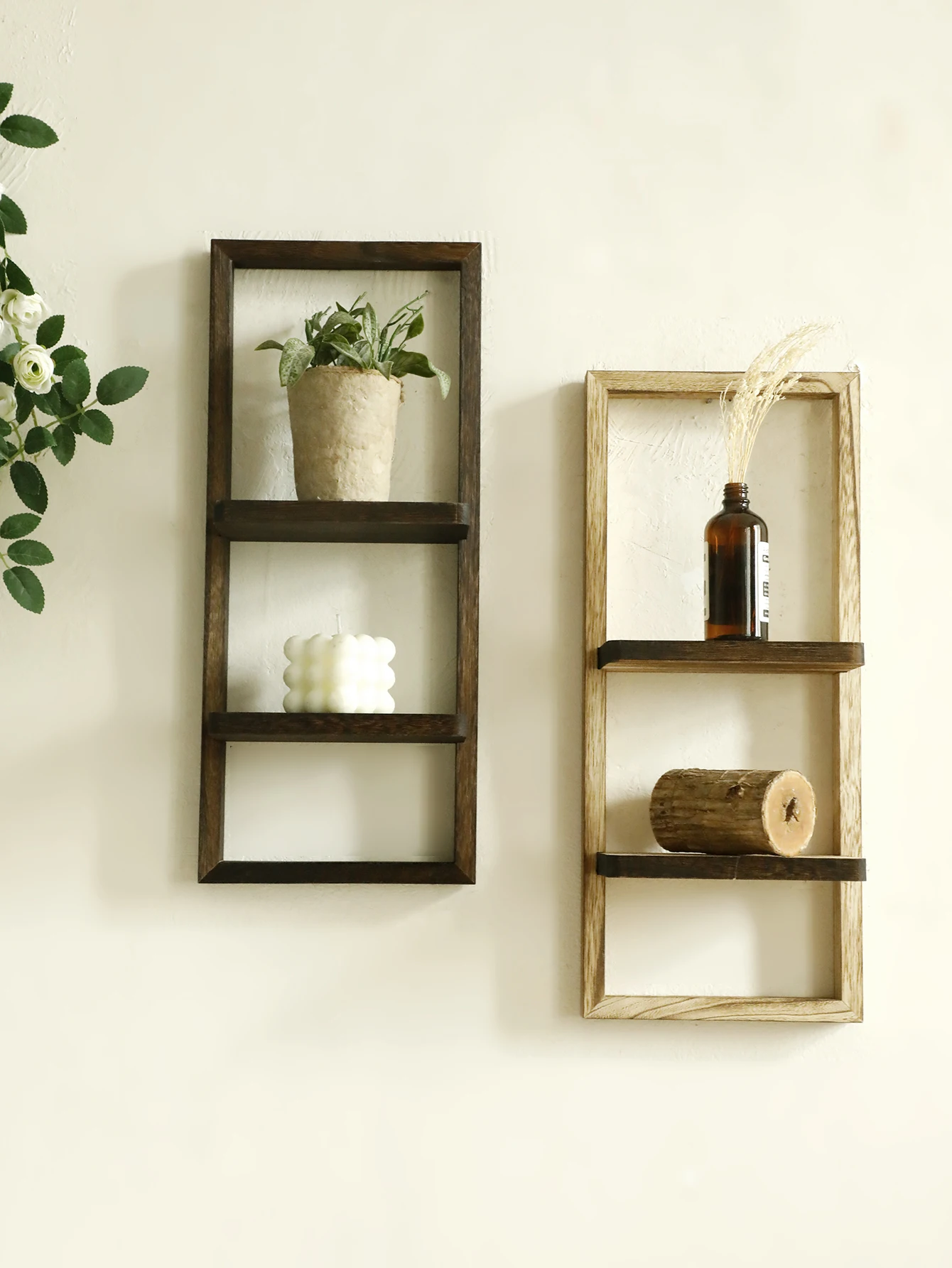 1pc Rustic Wooden Wall Shelves 2-tier Floating Shelf for Plants Decor Home Living Room Kitchen Bedroom Wall Mounted Display Rack