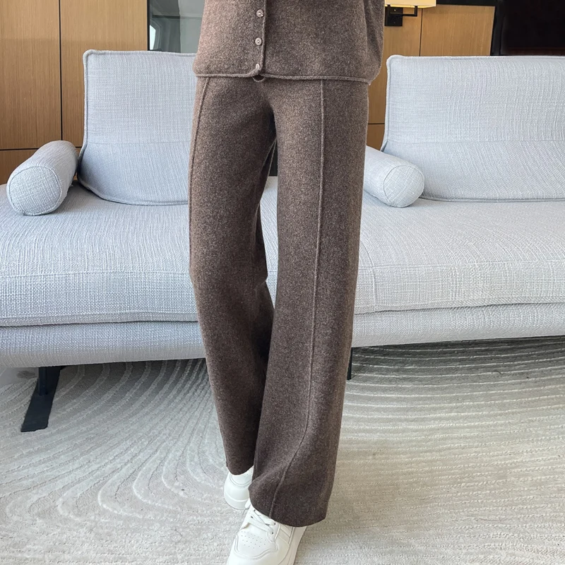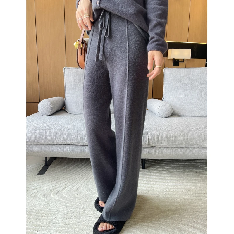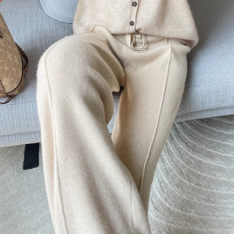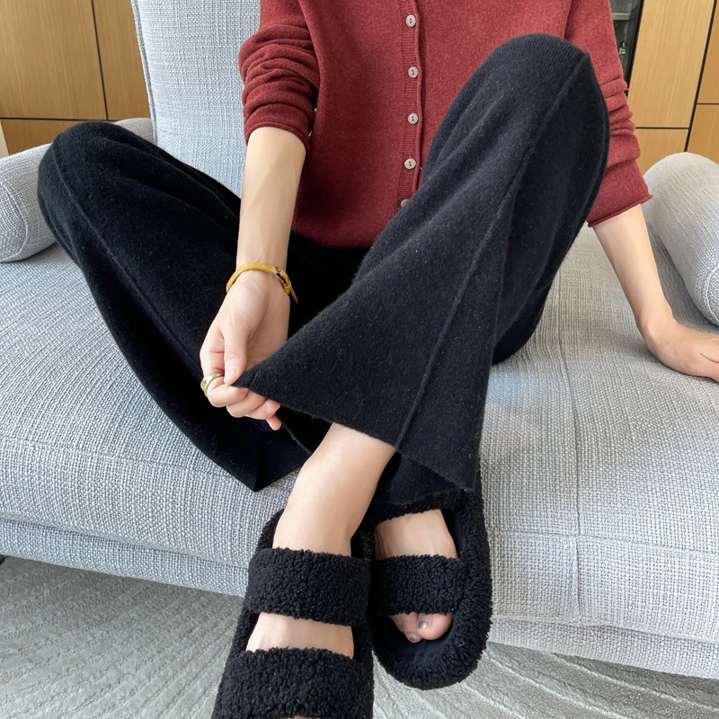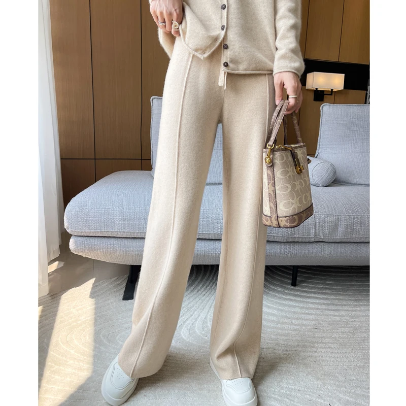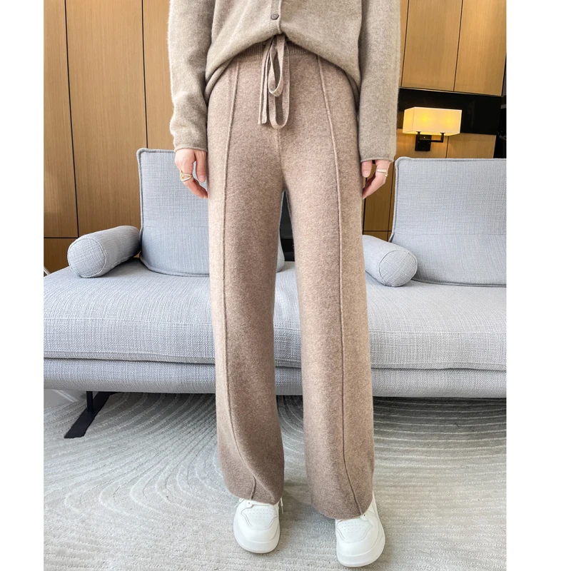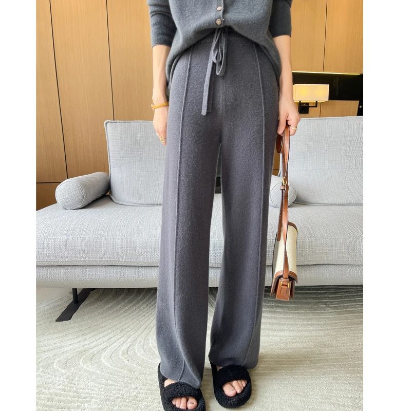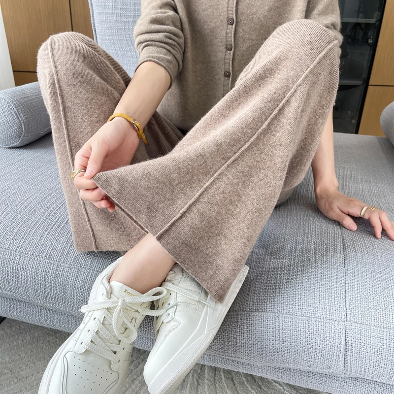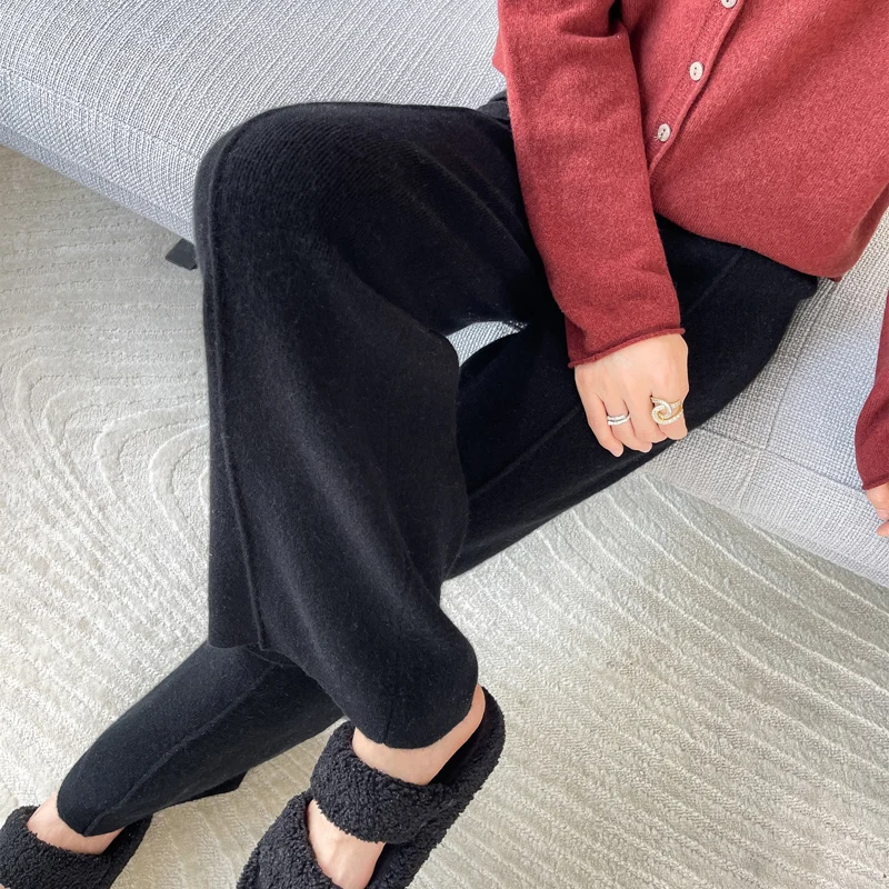 ANGEL 100% Merino Wool Women's Mid Seam Pants Autumn Winter Casual Soft Warm Cashmere Knitted Trousers New Fashion Cosy Pants