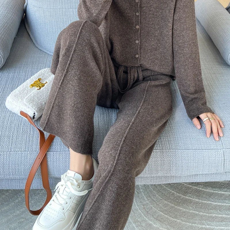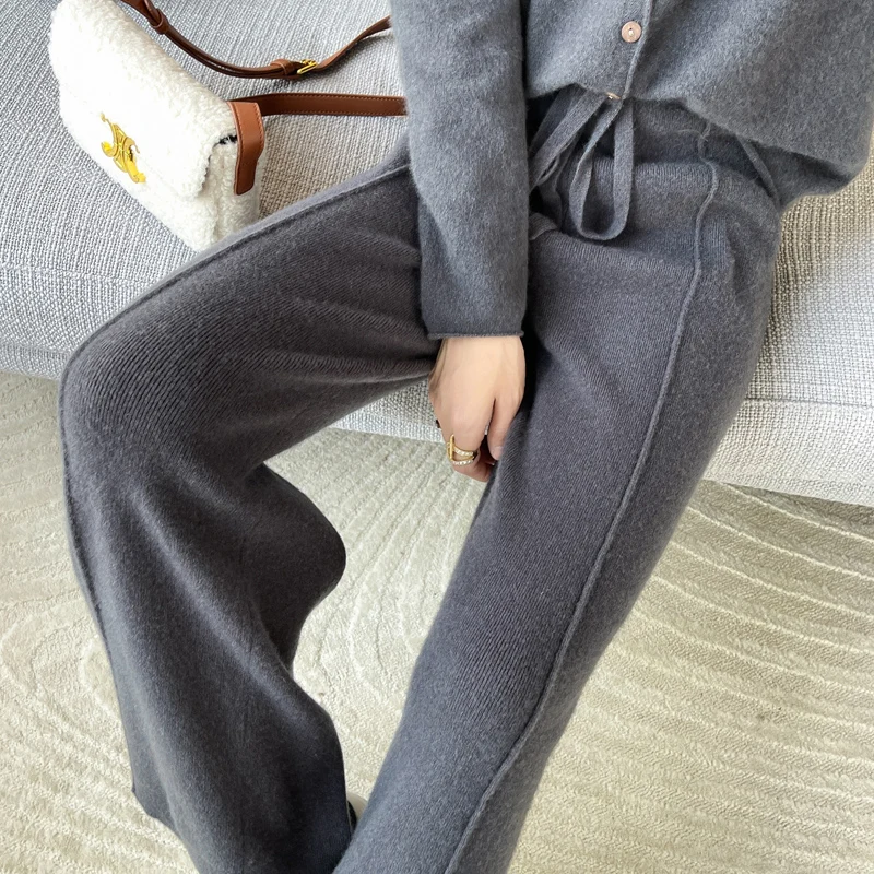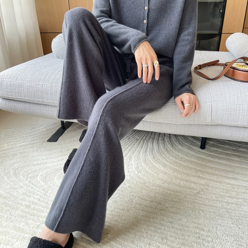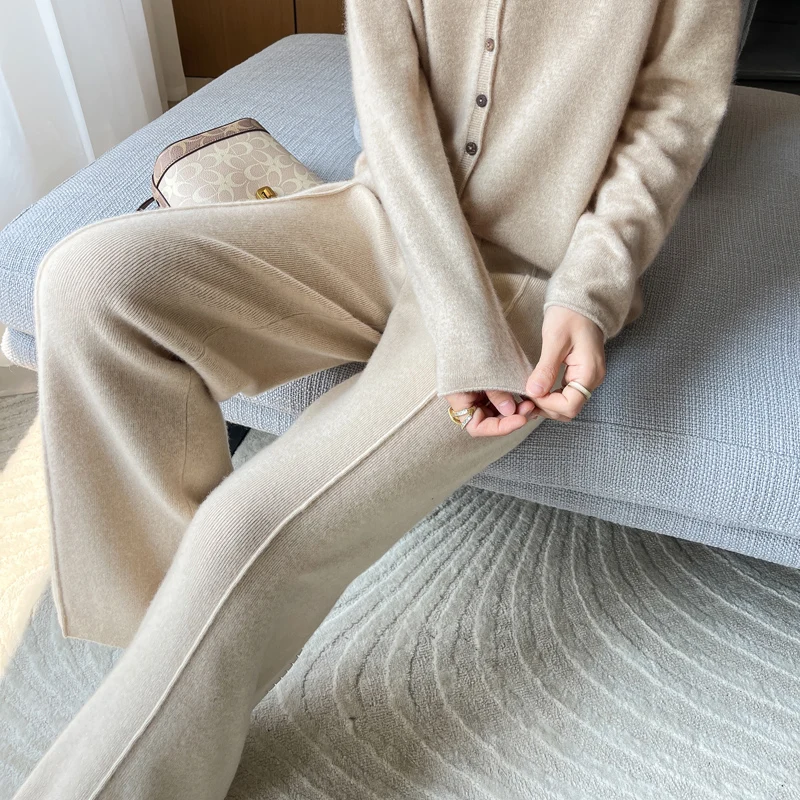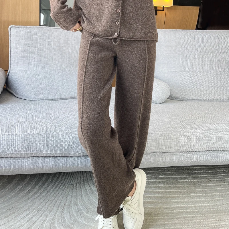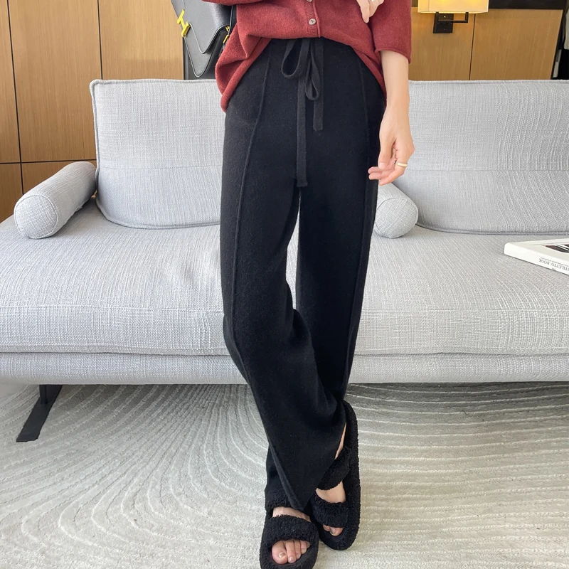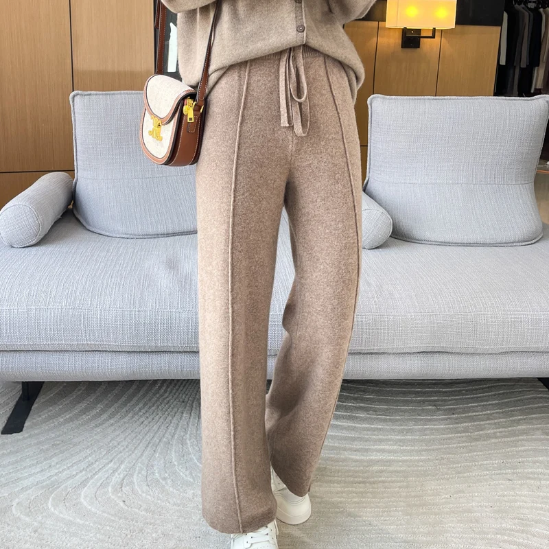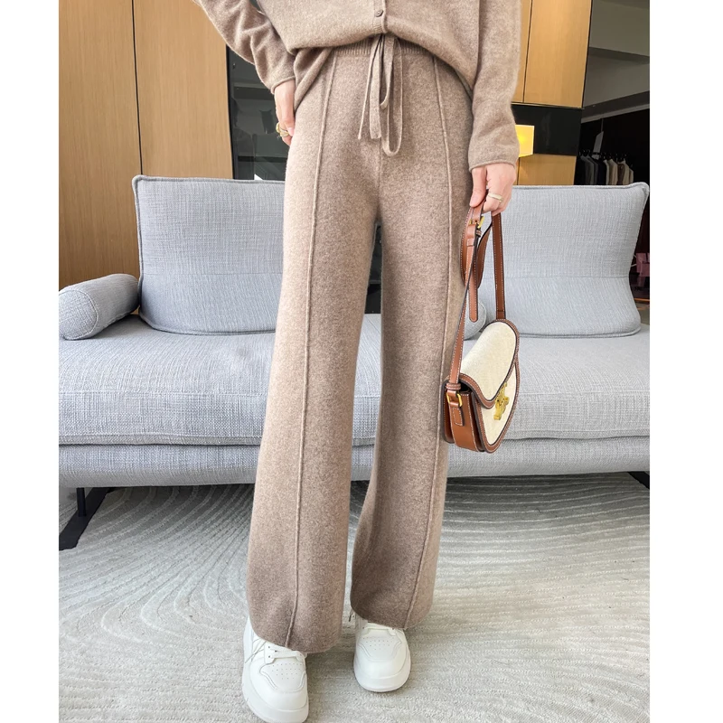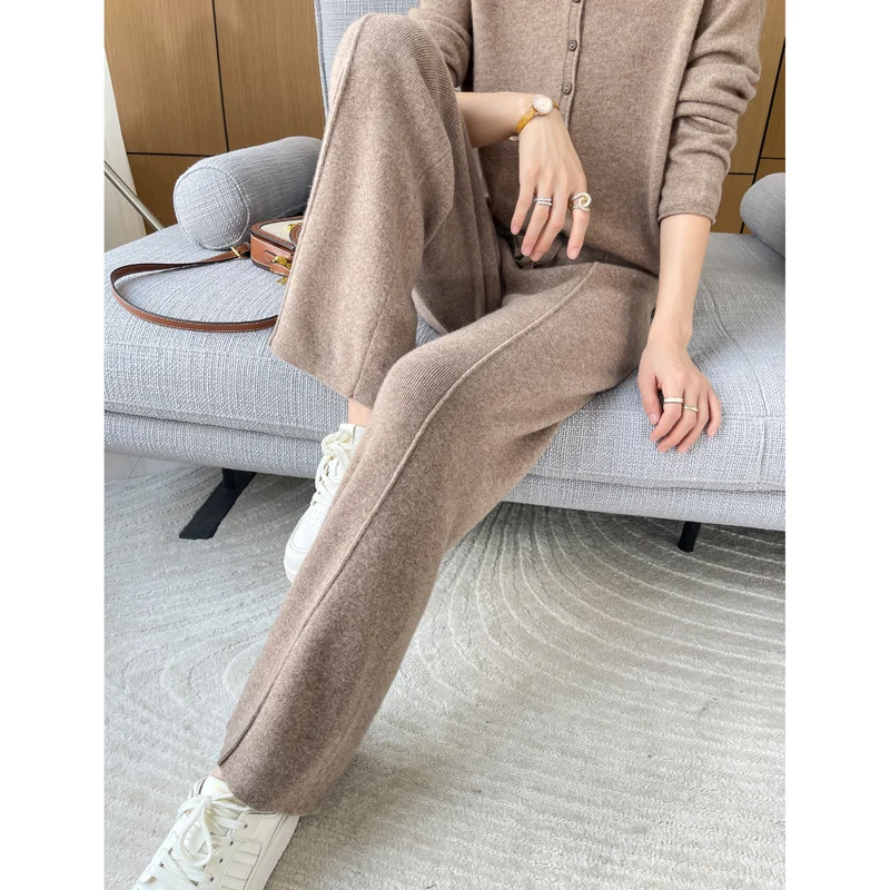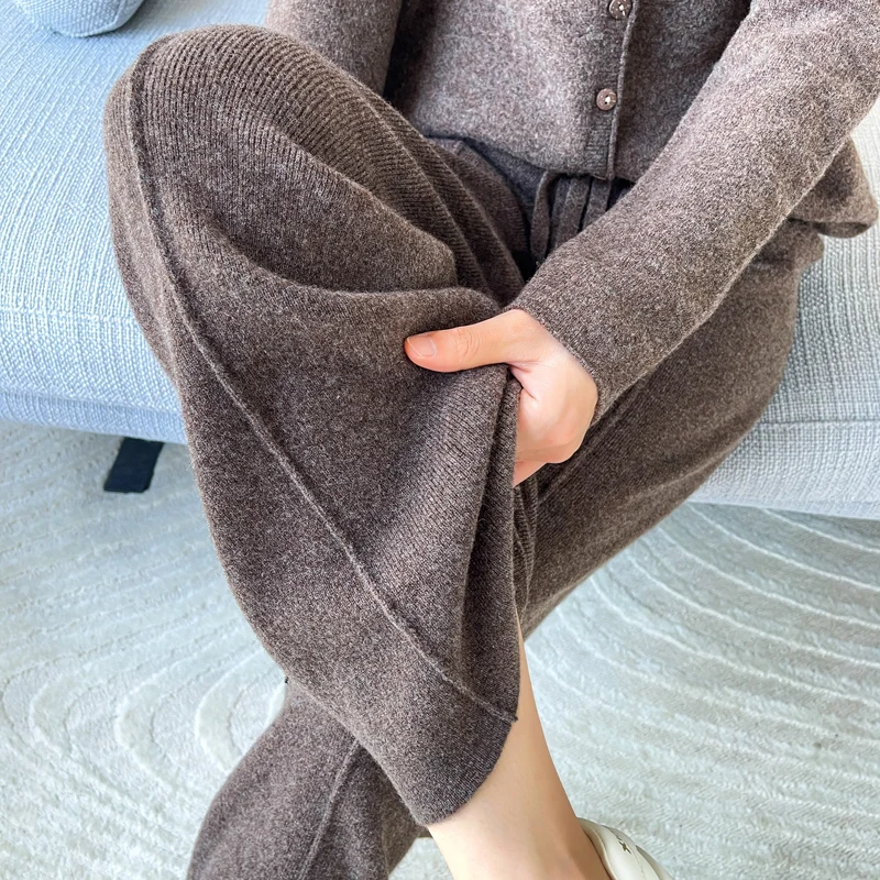 ANGEL 100% Merino Wool Women's Mid Seam Pants Autumn Winter Casual Soft Warm Cashmere Knitted Trousers New Fashion Cosy Pants