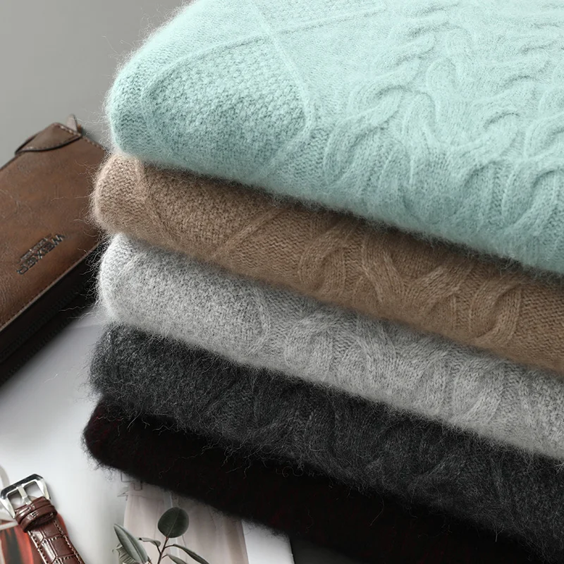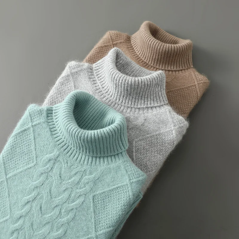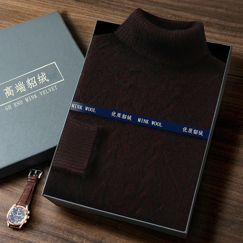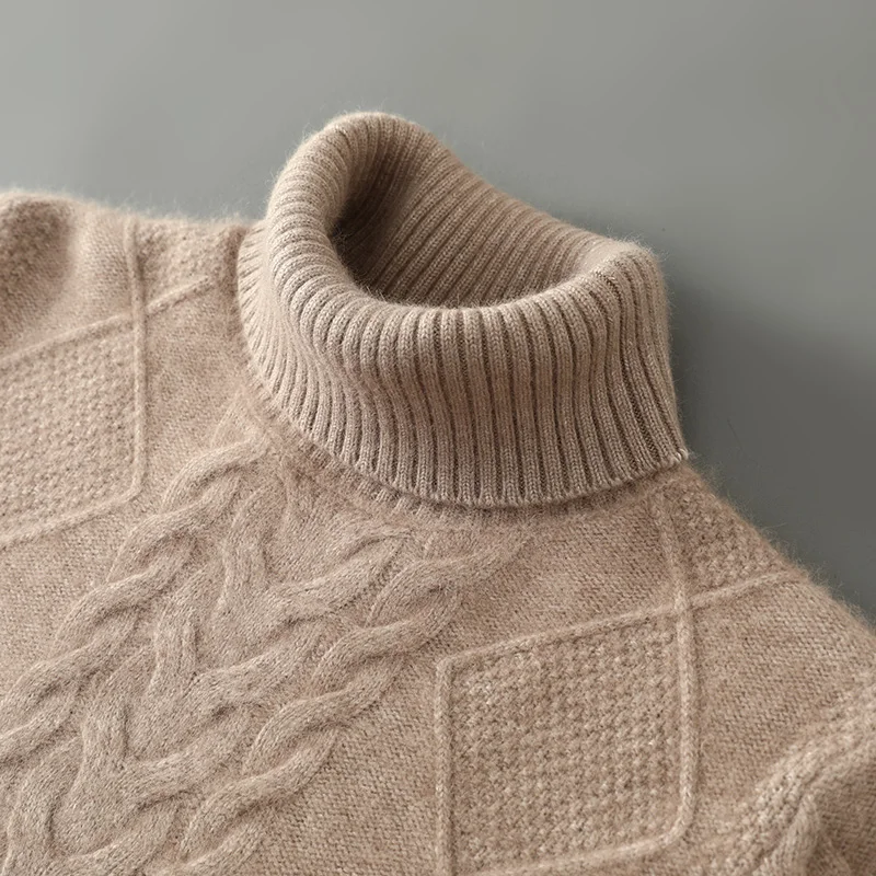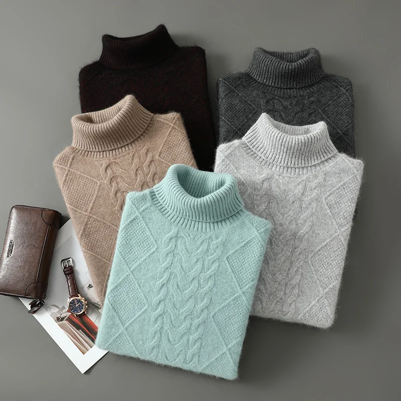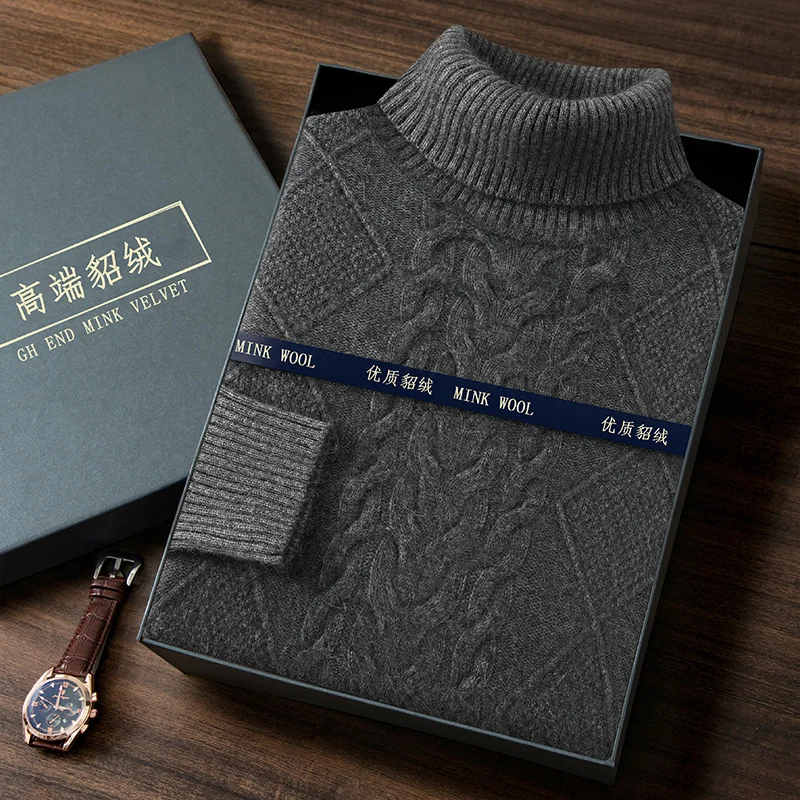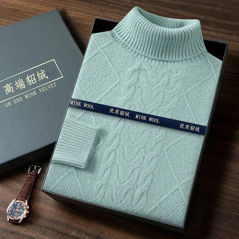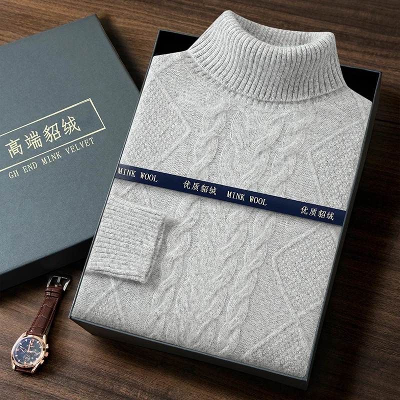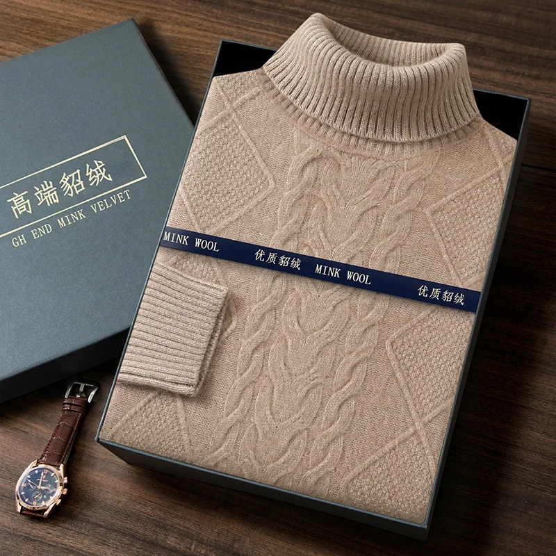 ANGEL Men Turtleneck Pullover Long Sleeve Cashmere Thick Sweater Autumn Winter 100% Mink Cashmere Knitwear Smart Casual Clothing