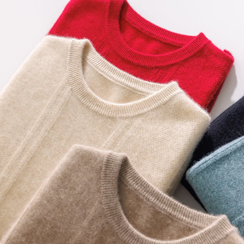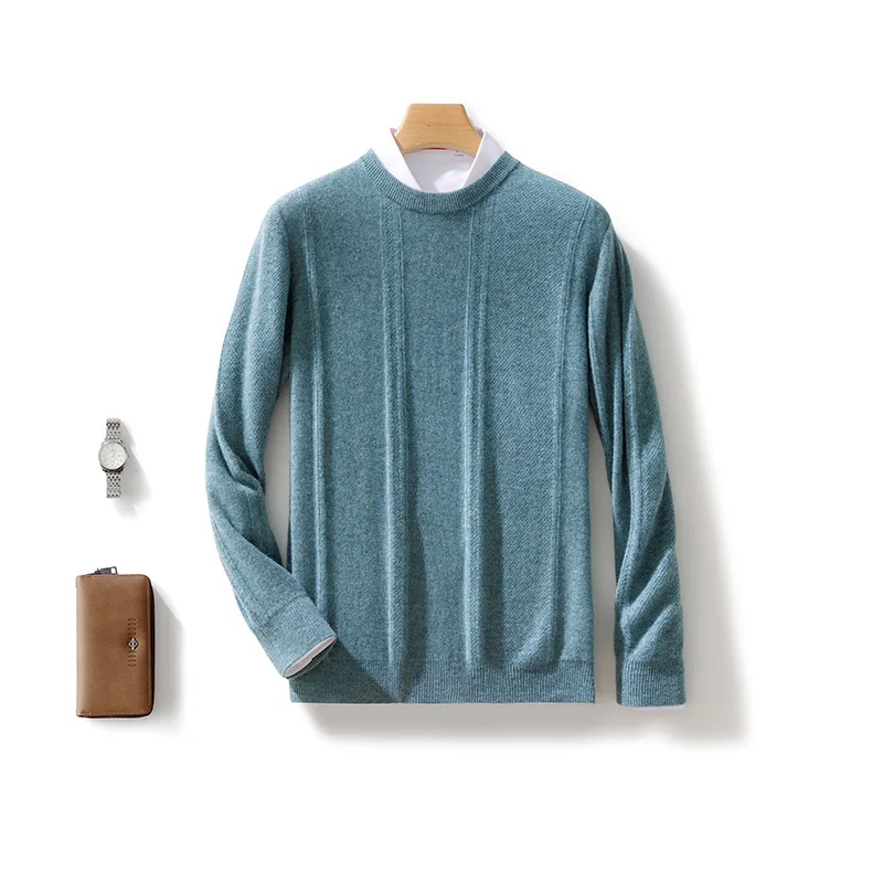 Autumn Winter 100% Merino Wool O-Neck Vertical Stripes Sweater Pullover Cashmere