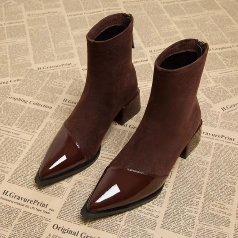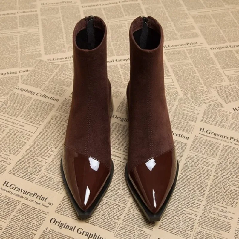 Fashion Short Boots Women 2025 Autumn New Professional French Sexy Pointed Toe Daily Versatile Thick Heel Short Boots Trend