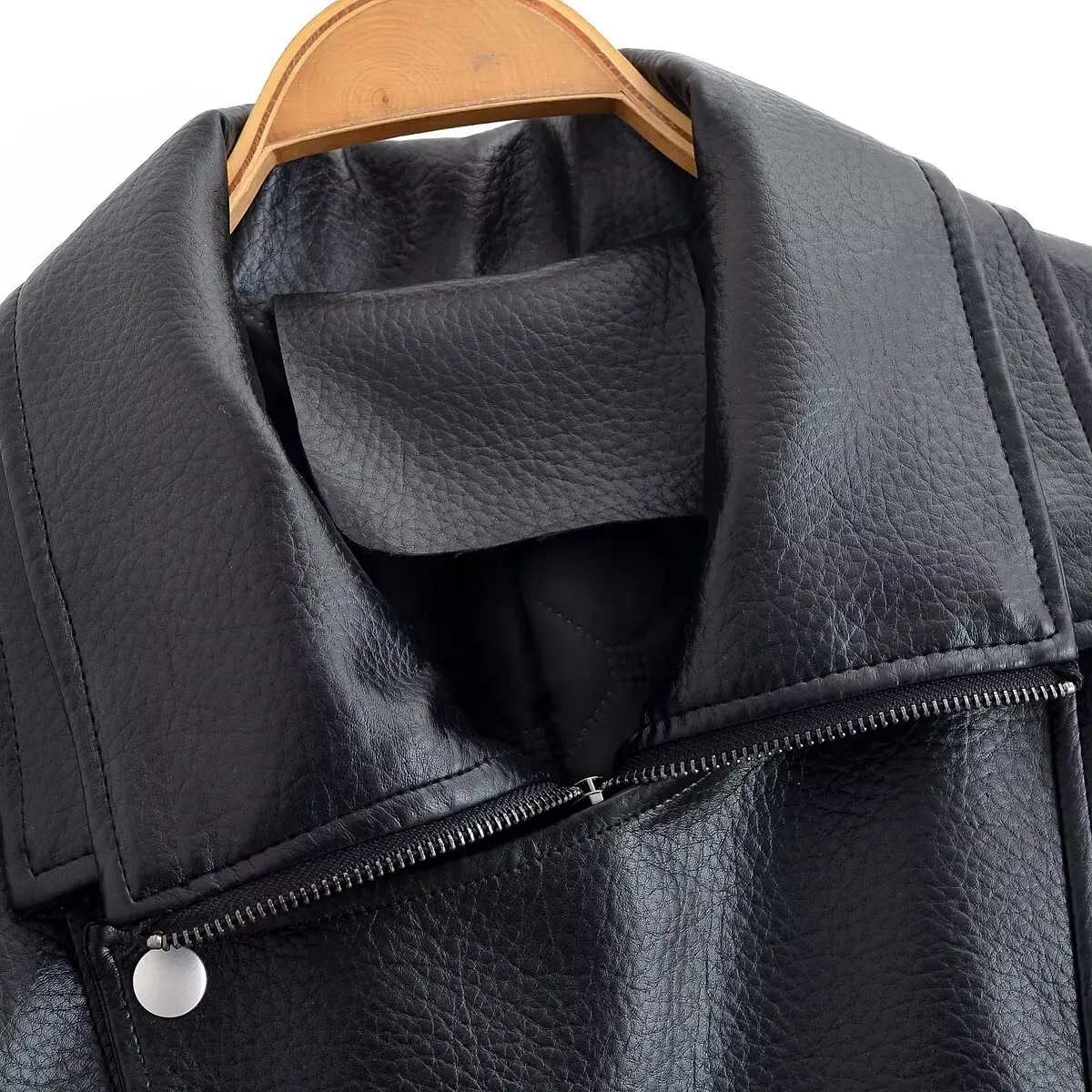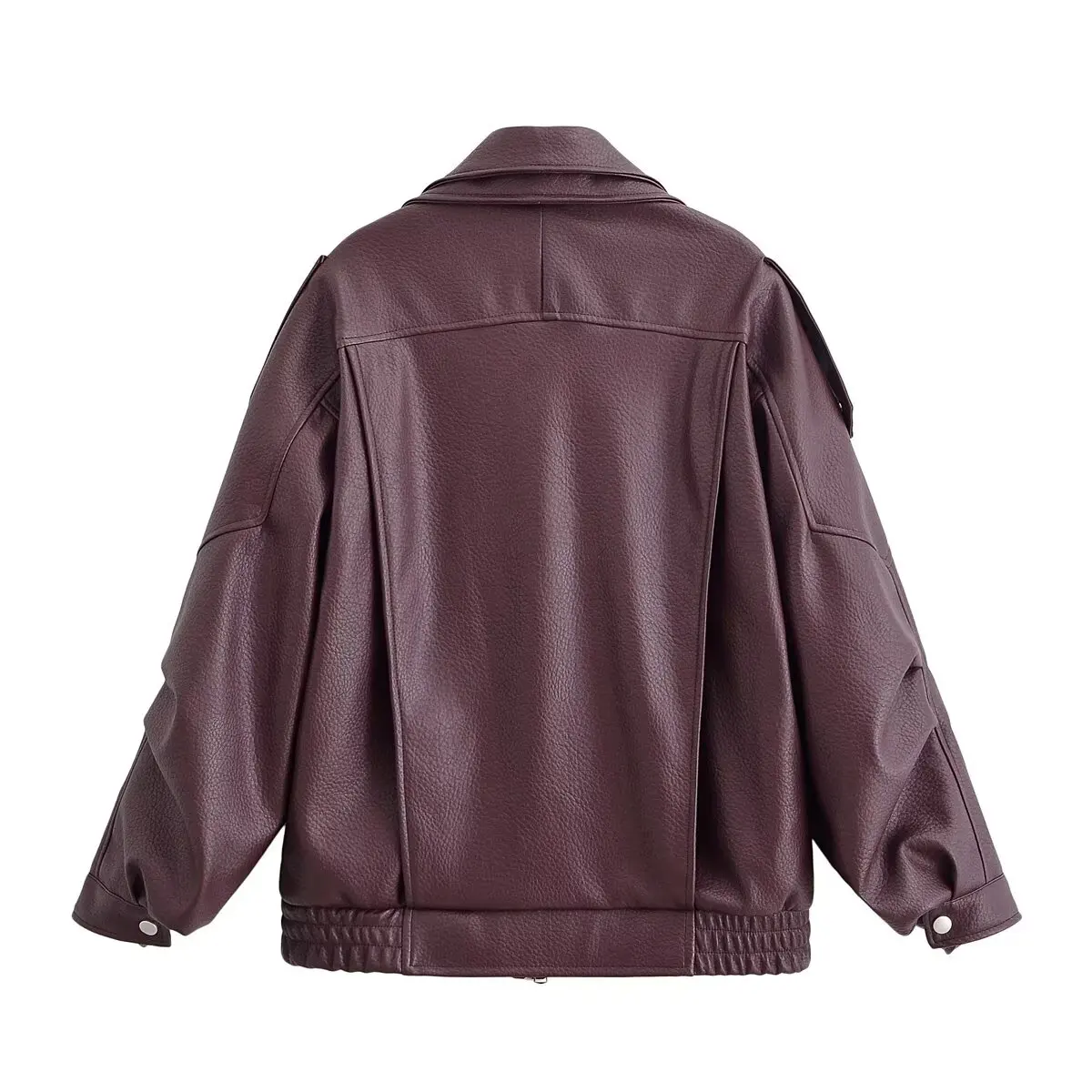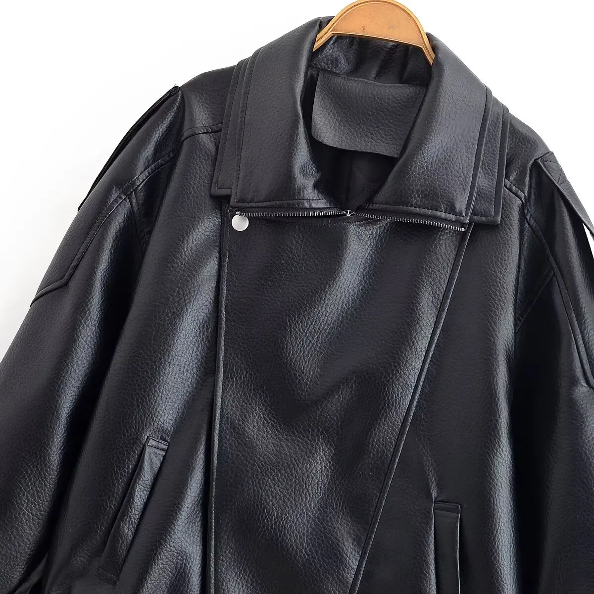 HH Woman Elegant Winter Long Sleeves Zipper Pocket Decoration Quilted Leather Jacket Female Street Style Leisure Lapel Overcoat