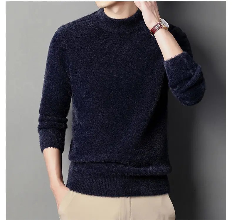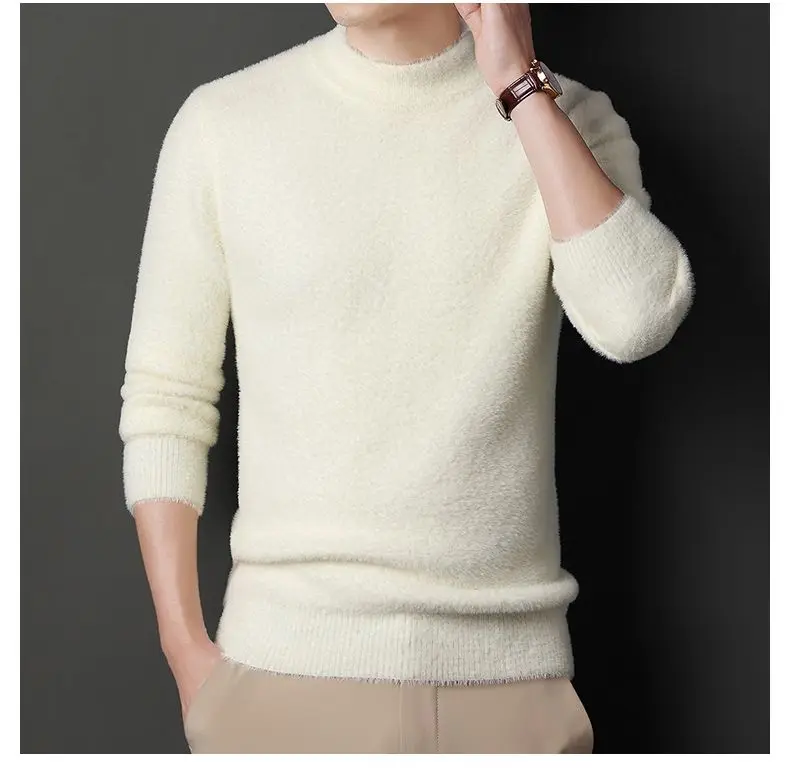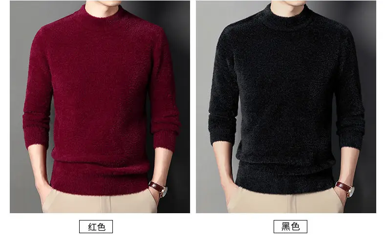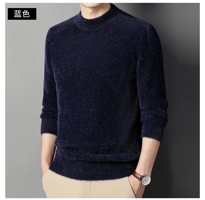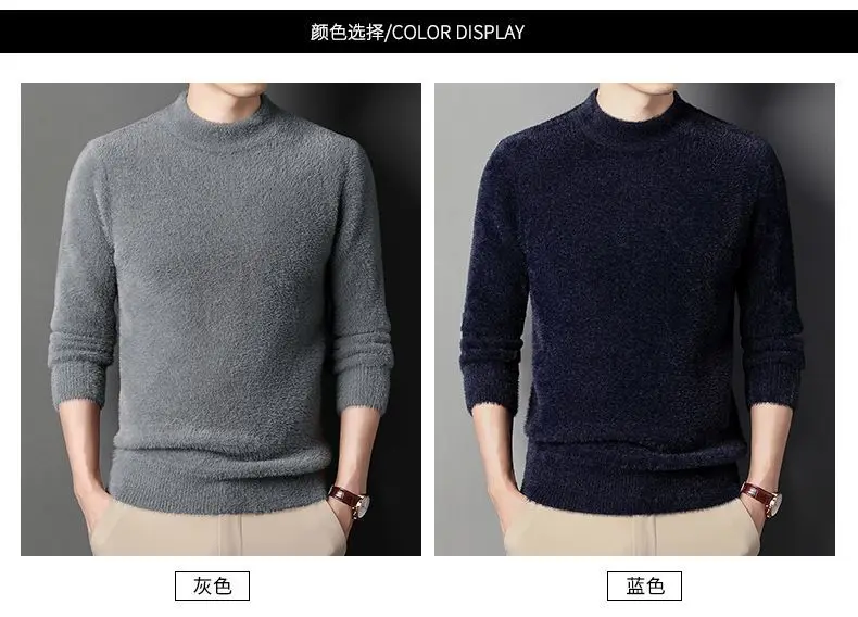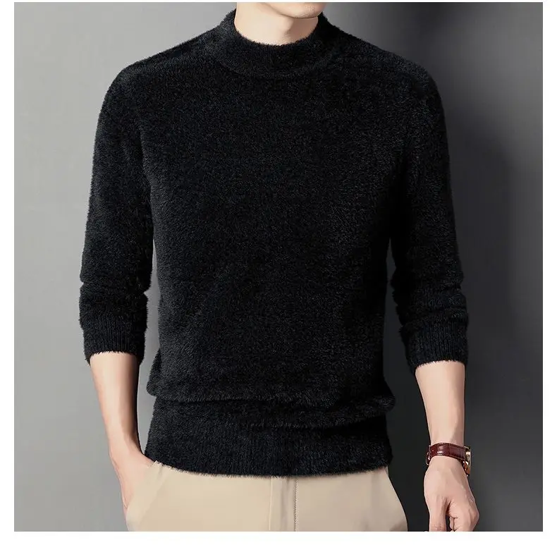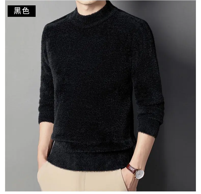 Sweater Pullovers Thickened Half High Neck Solid Male Clothes Business Casual Autumn Winter Sweaters