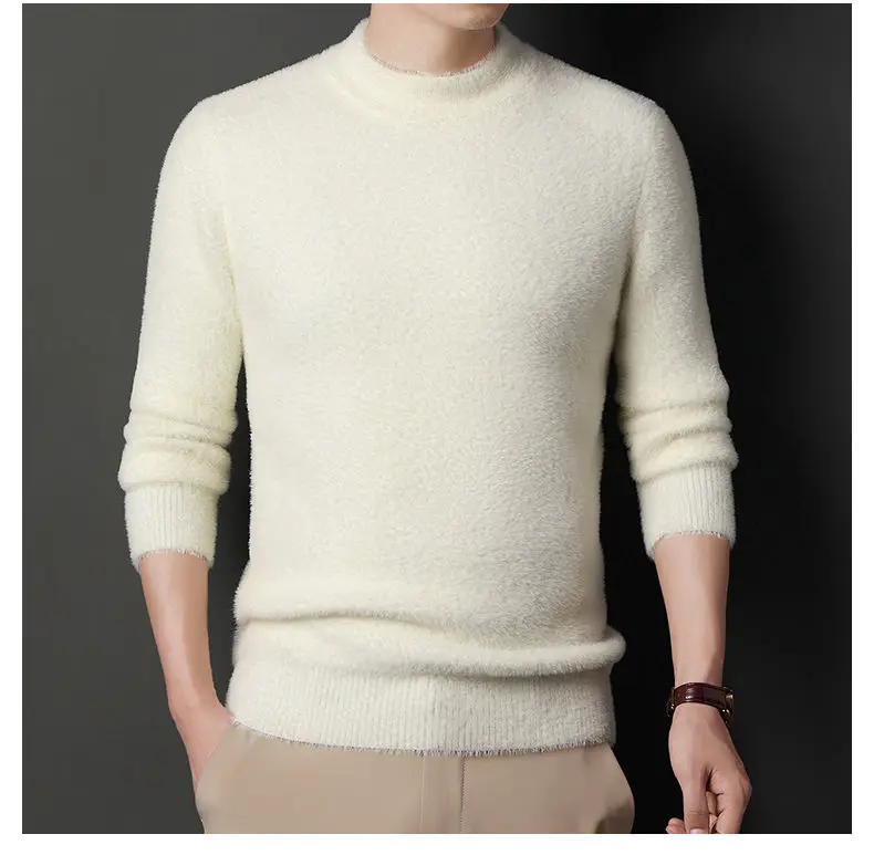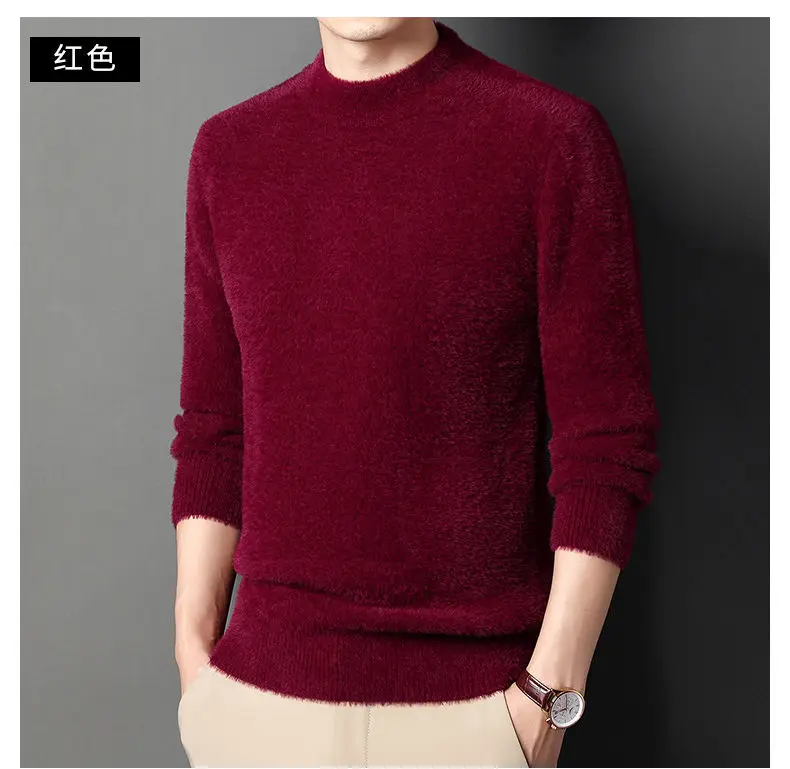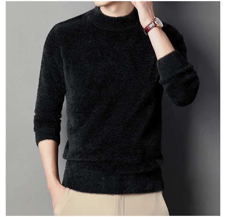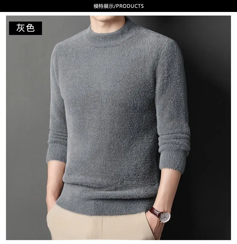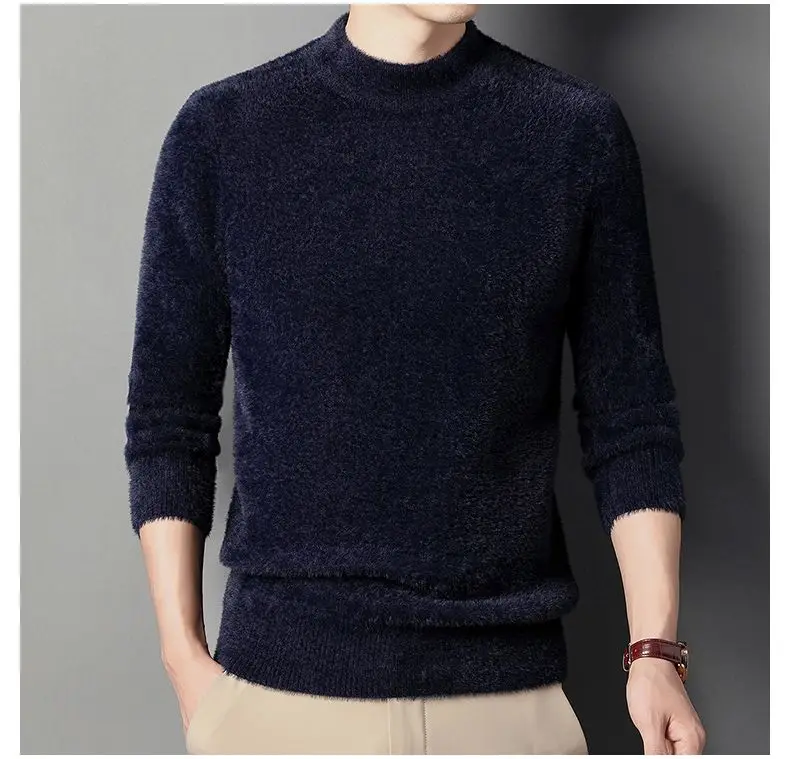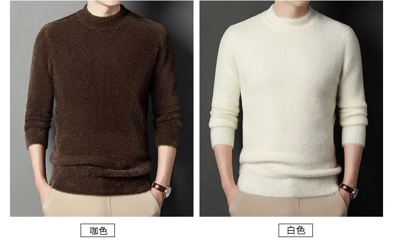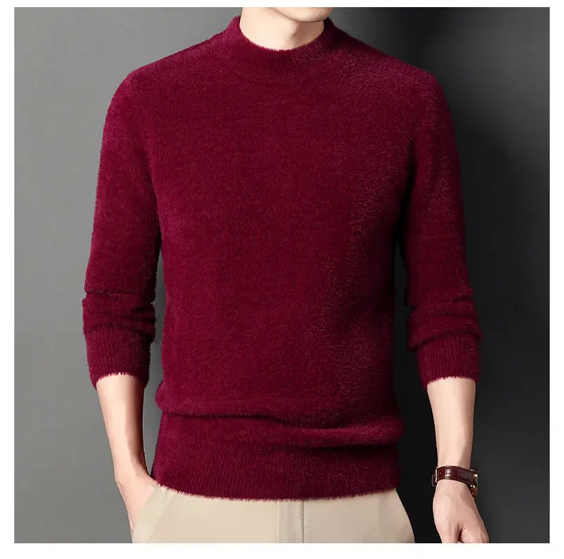 Sweater Pullovers Thickened Half High Neck Solid Male Clothes Business Casual Autumn Winter Sweaters