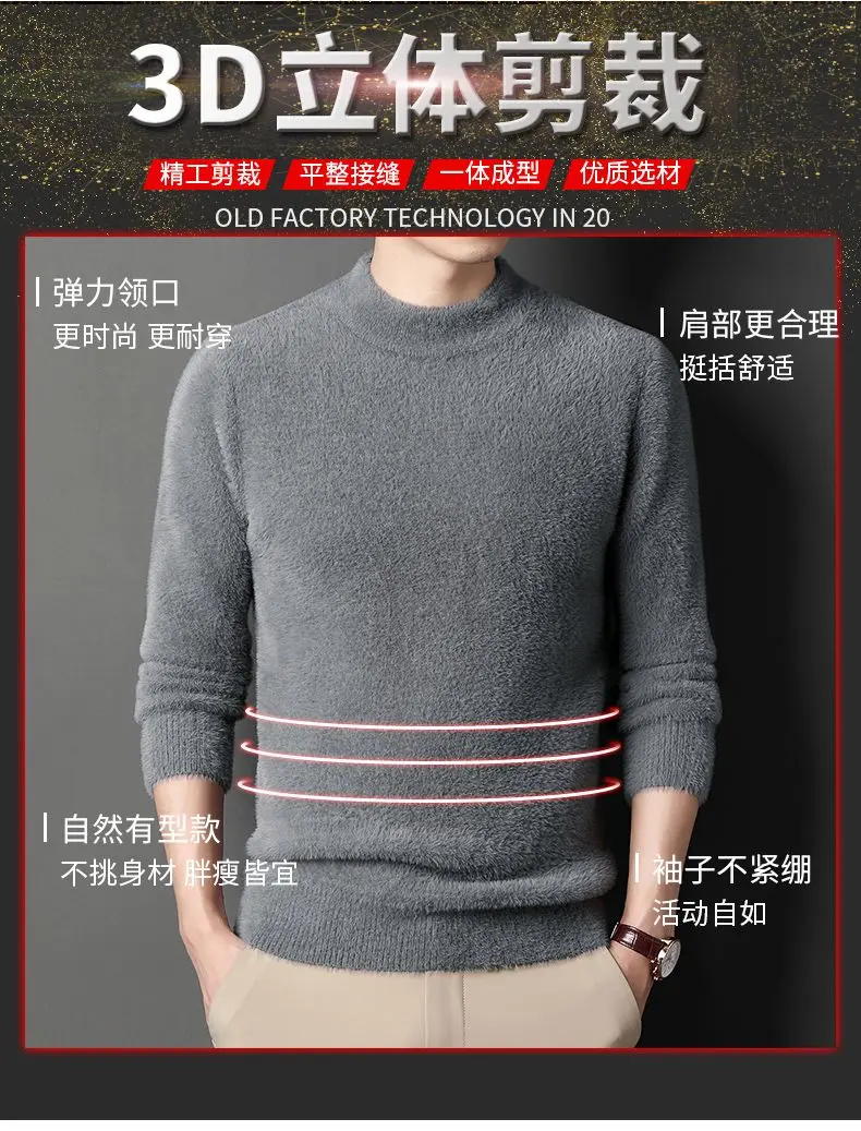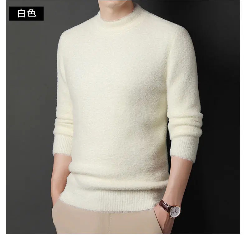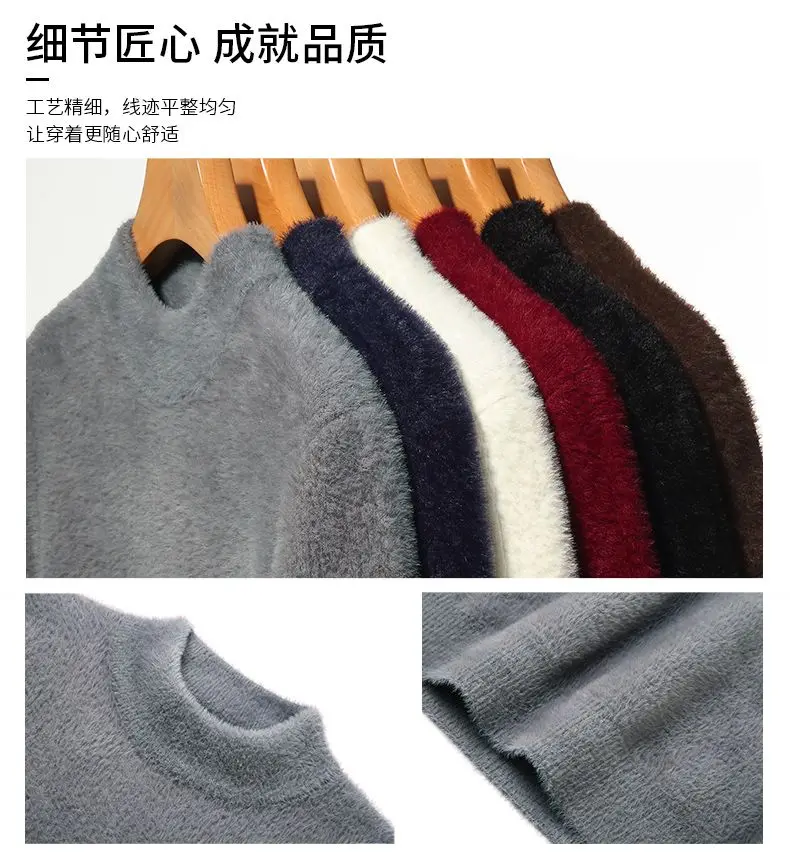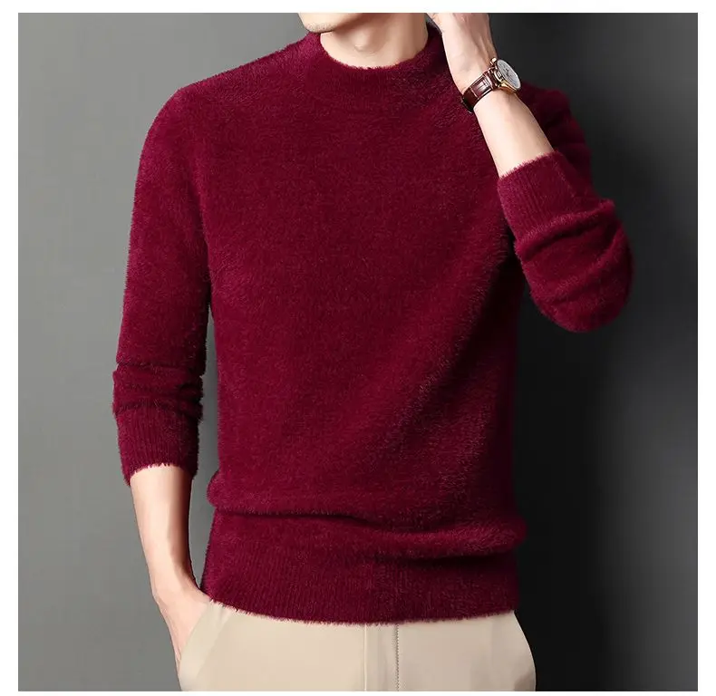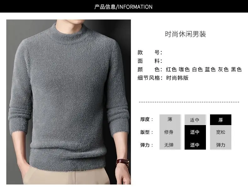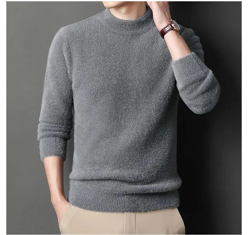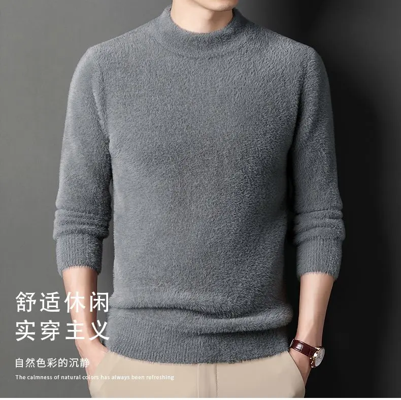 Sweater Pullovers Thickened Half High Neck Solid Male Clothes Business Casual Autumn Winter Sweaters