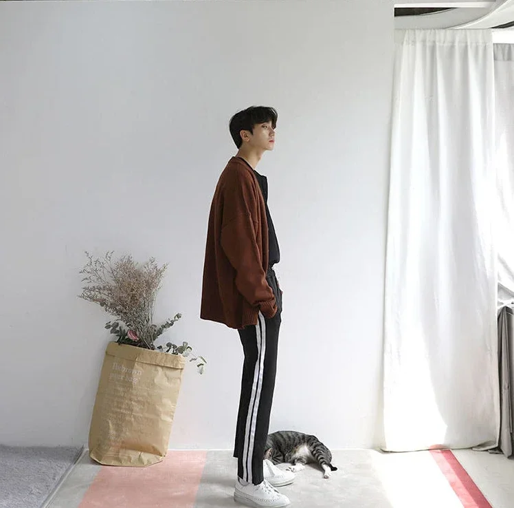 Knitted Sweaters For Men Solid Color White Man Clothes Coat Plain Jacket Cardigan Autumn Elegant Comfortable