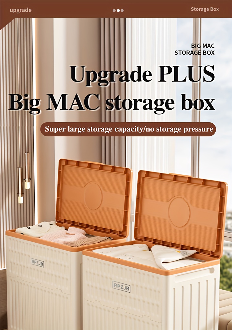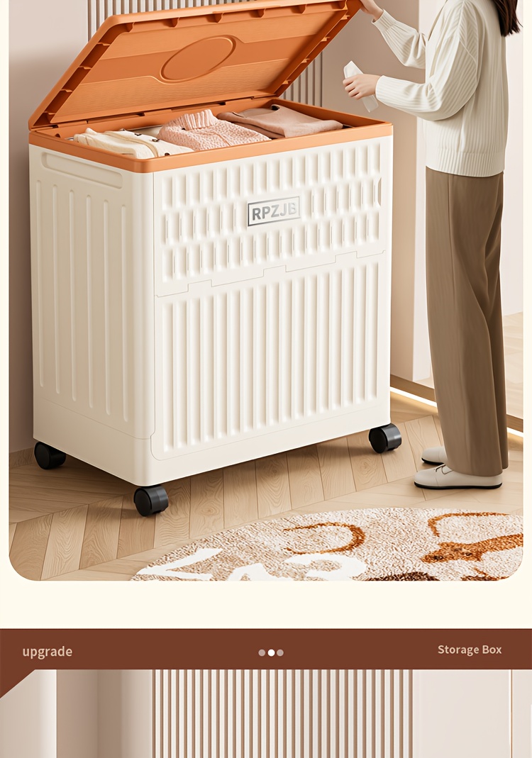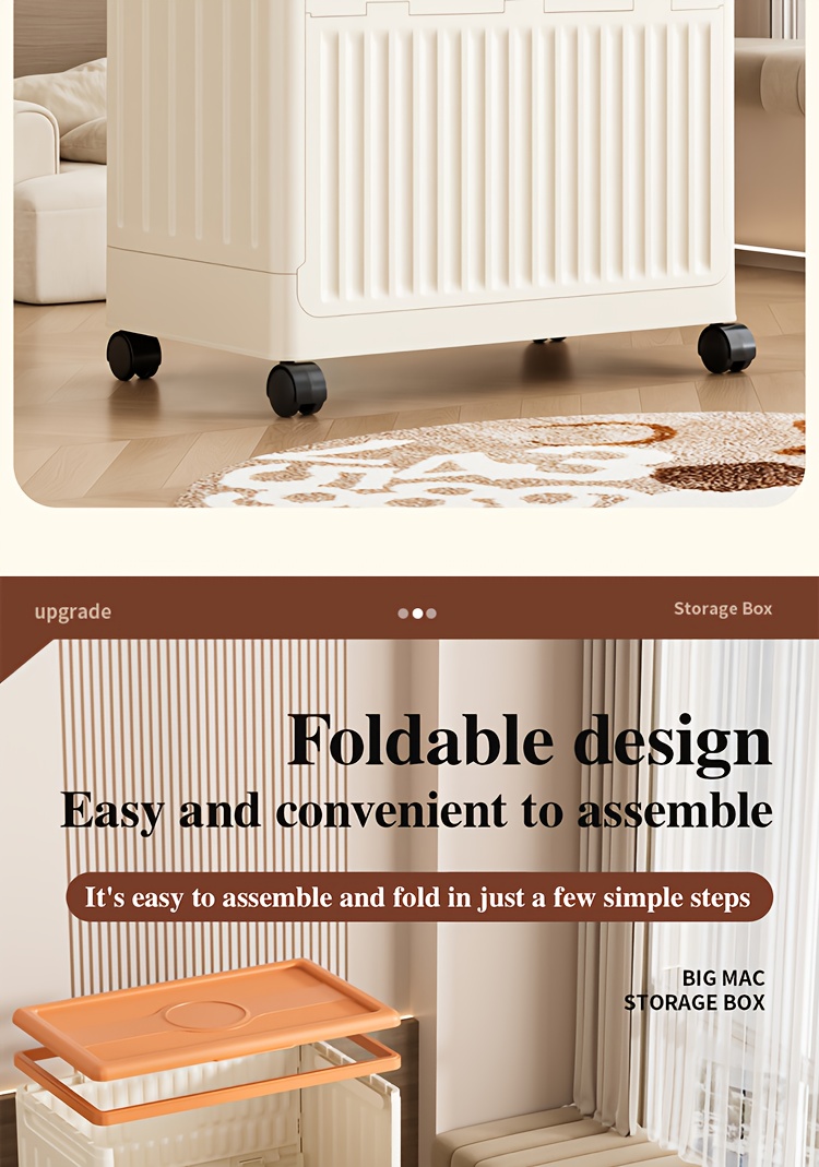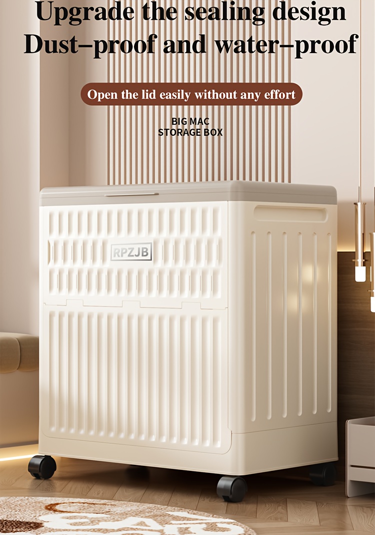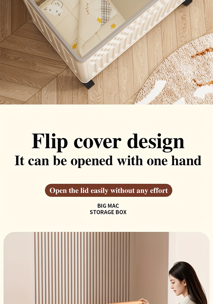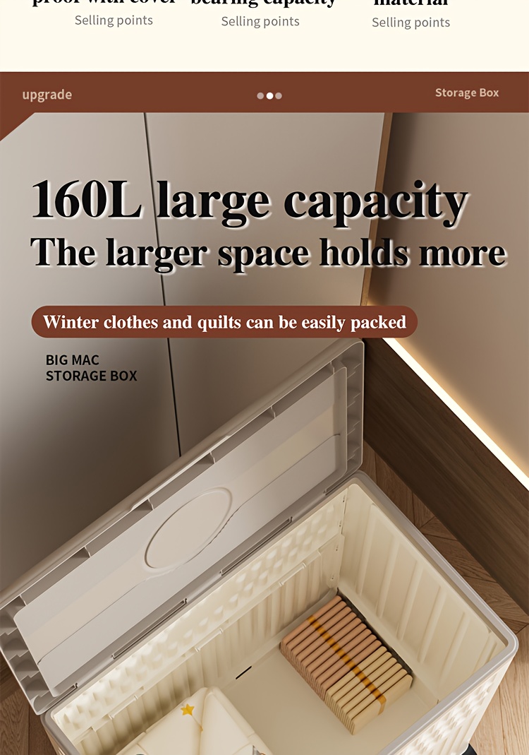 Large 160L/5631oz Heavy-Duty White & Brown Flip-Top Storage Box with Lid Lock, Heavy-Grip Hinges & 4-Wheel Mobility - Foldable Plastic Organizer for Clothes, Bedding, Toys, Luggage - Space-Saving Multi-Purpose Container Bin,