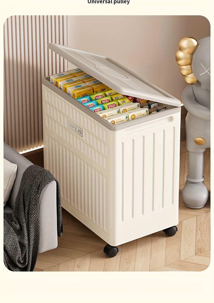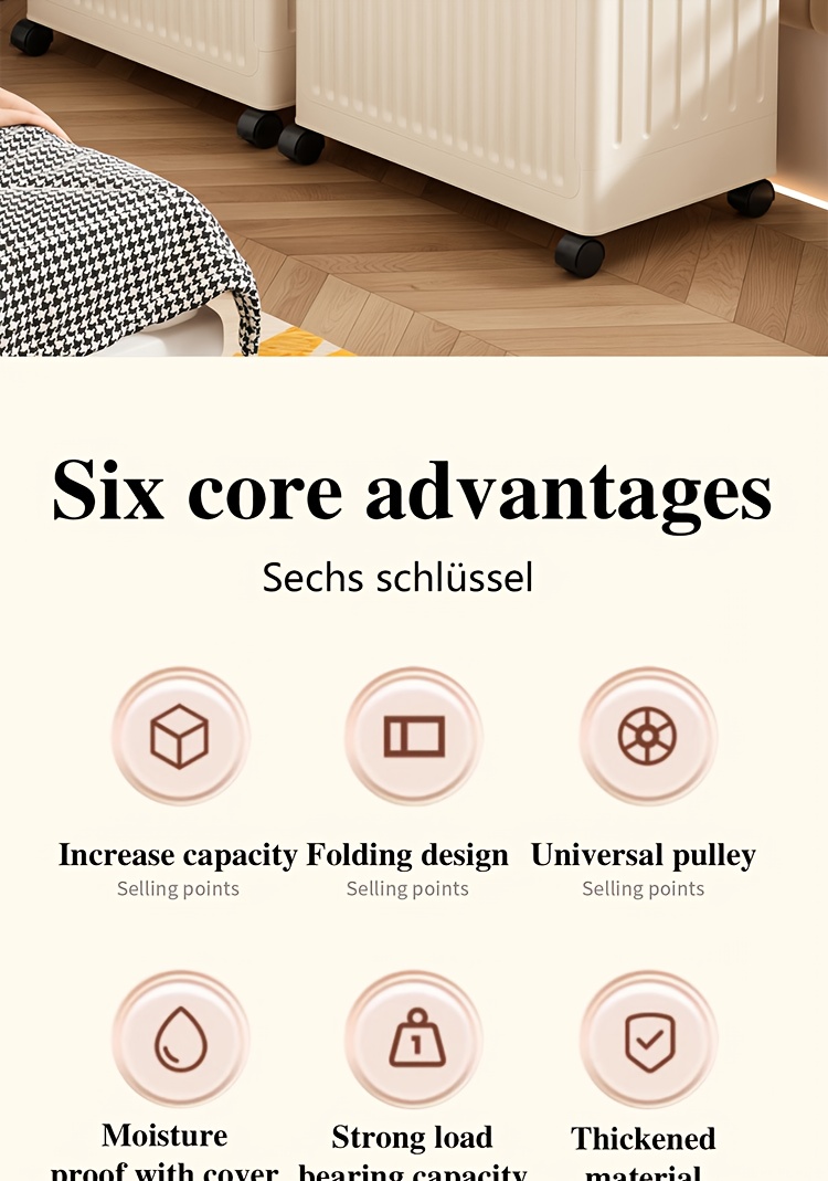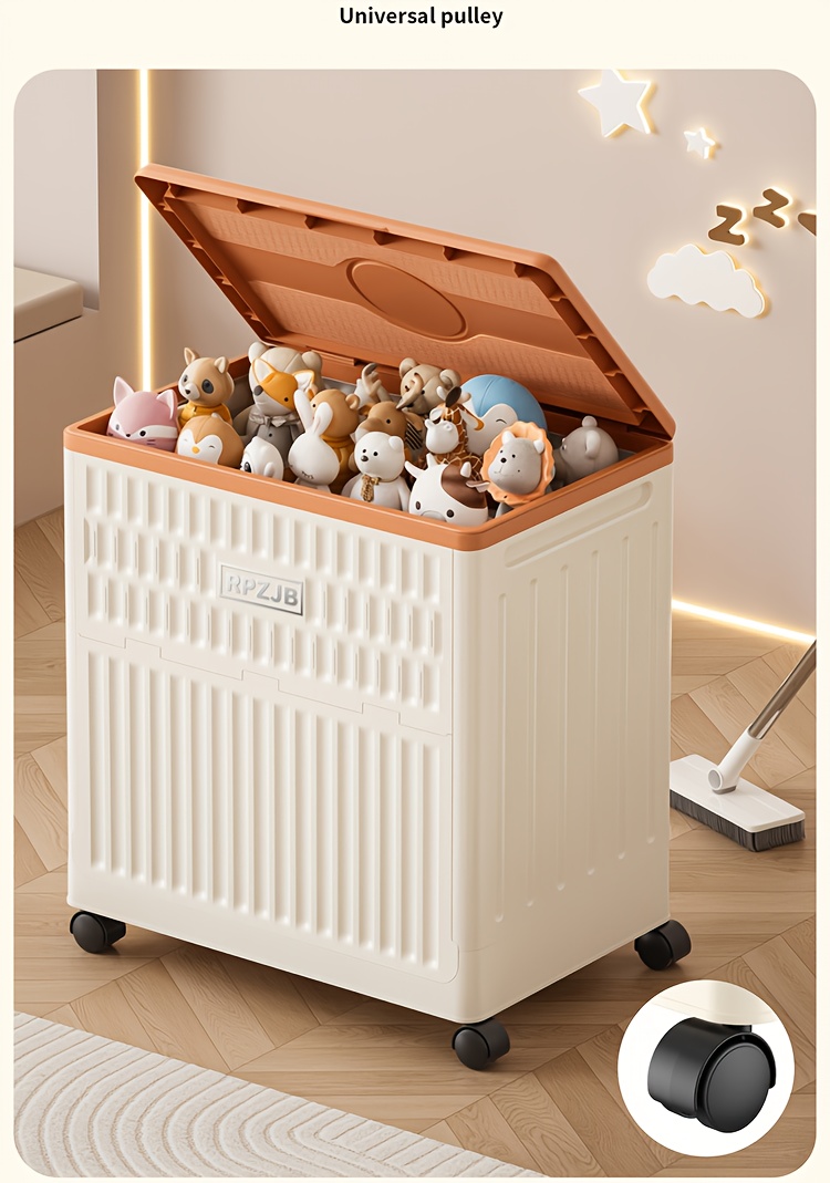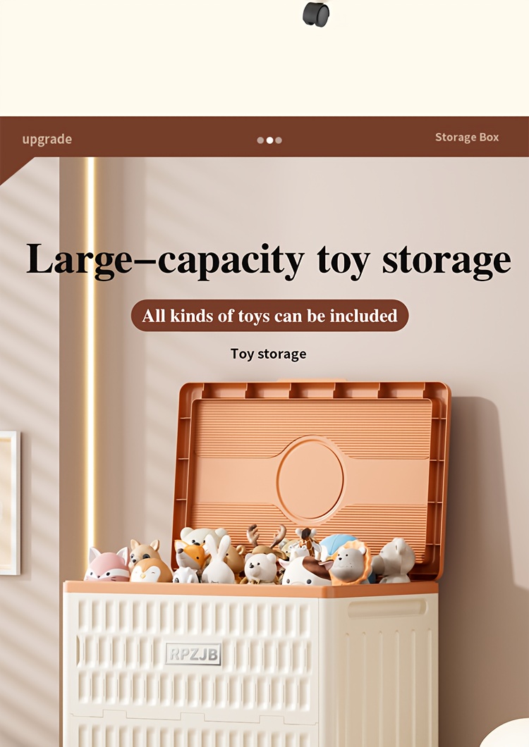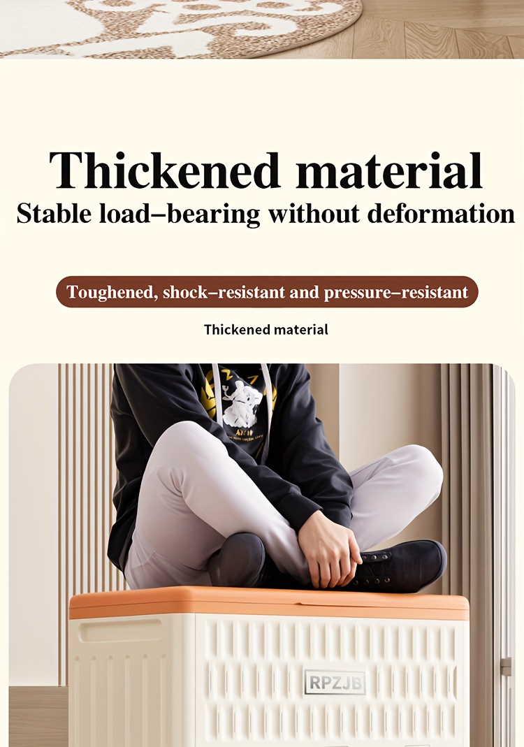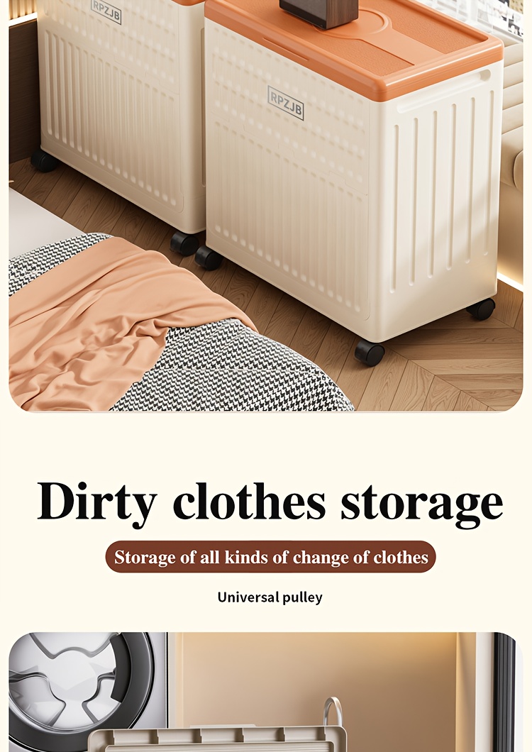 Large 160L/5631oz Heavy-Duty White & Brown Flip-Top Storage Box with Lid Lock, Heavy-Grip Hinges & 4-Wheel Mobility - Foldable Plastic Organizer for Clothes, Bedding, Toys, Luggage - Space-Saving Multi-Purpose Container Bin,