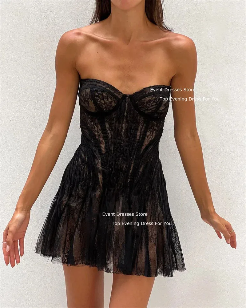 LISM Black Modern Mini Party Dresses Customised Short Lace Appliques Strapless Prom Dresses Robes De Soirée Special Occasion