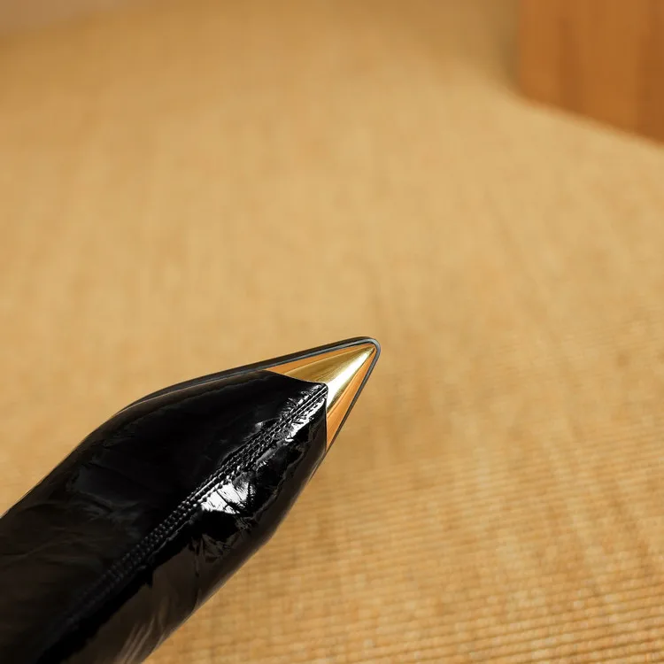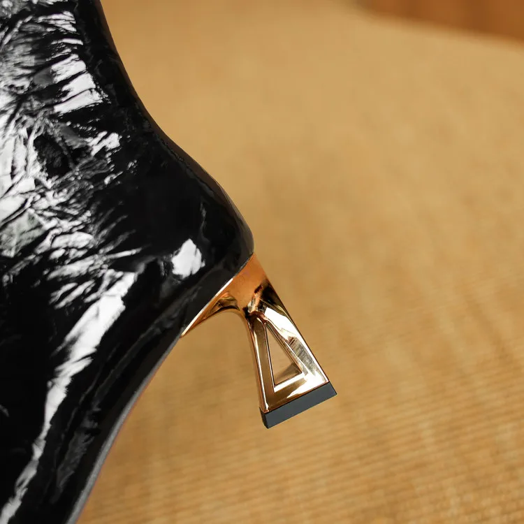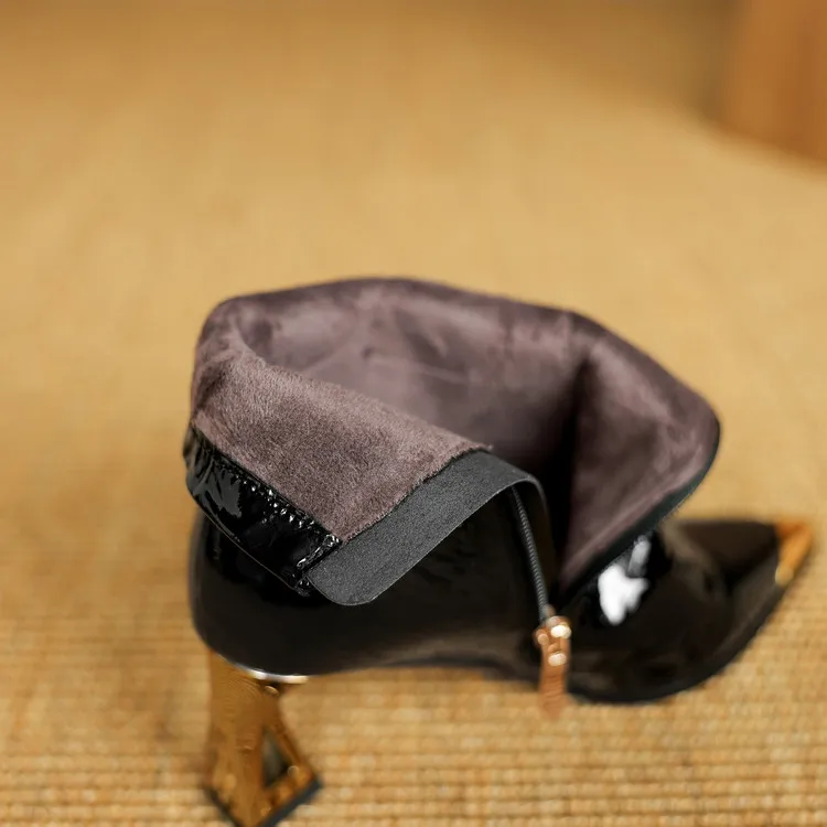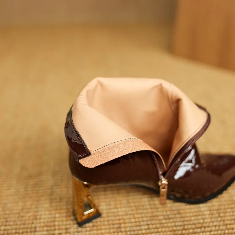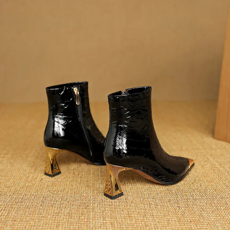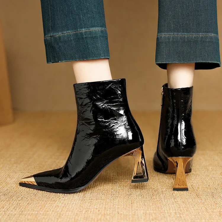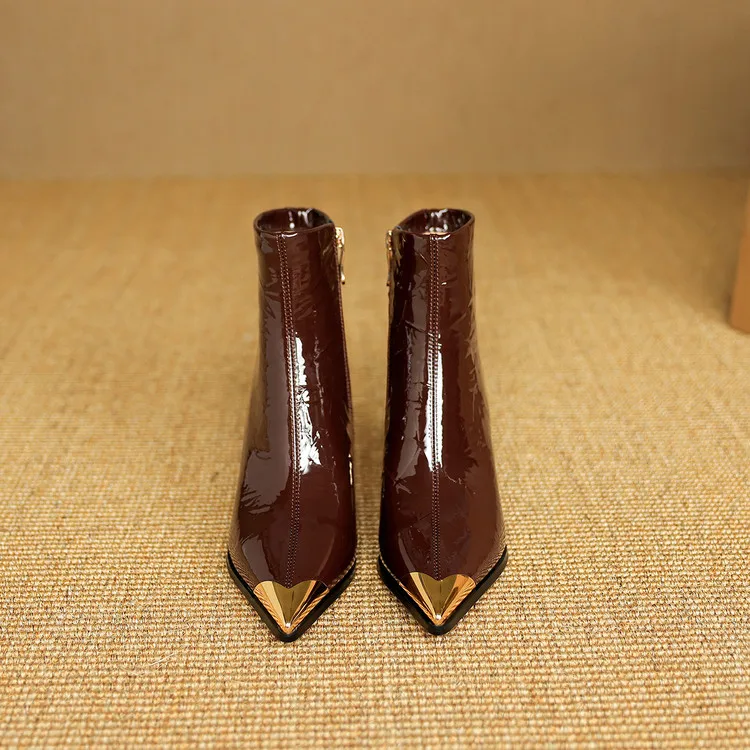 NEW Autumn/Winter Women Boots Patent Leather Shoes for Women Pointed Toe Kitten Heel Shoes Zip Ankle Boots Concise Modern Boots