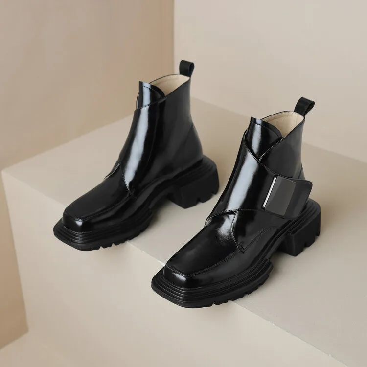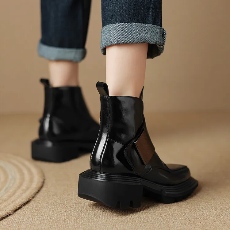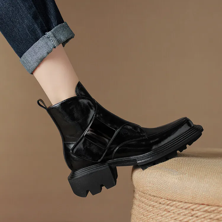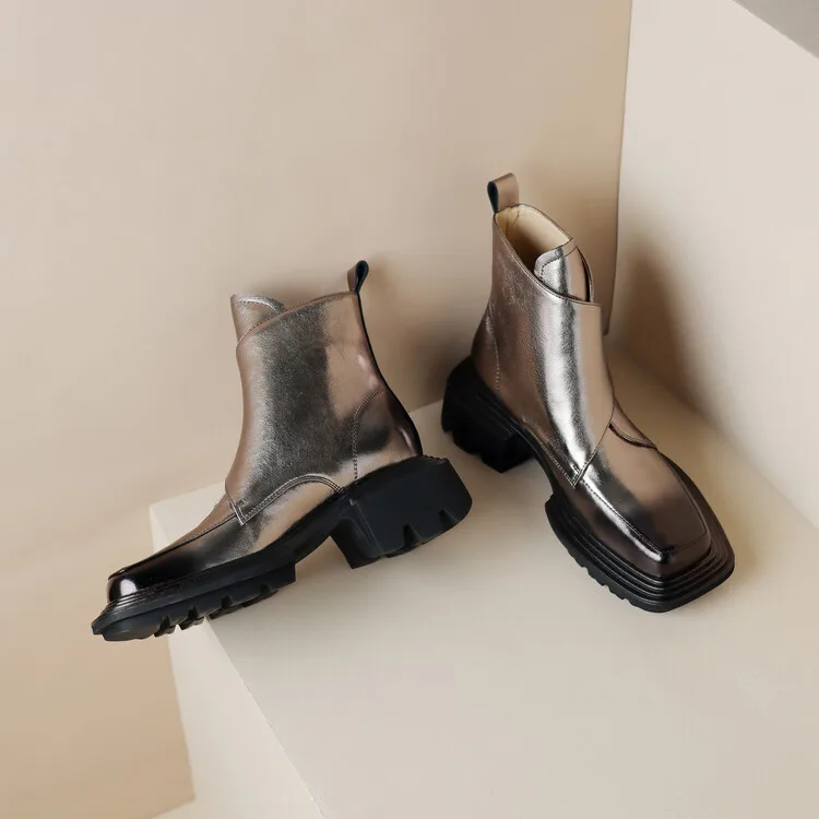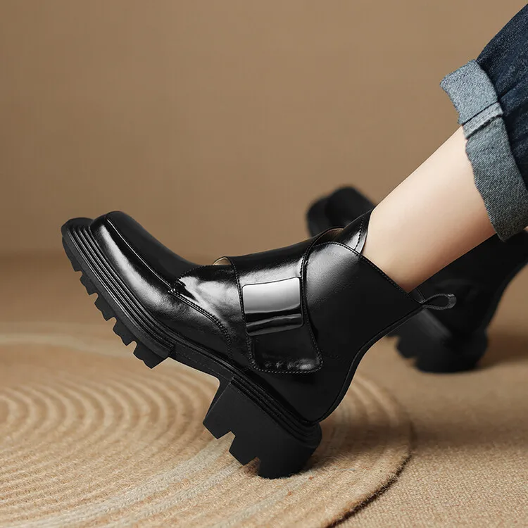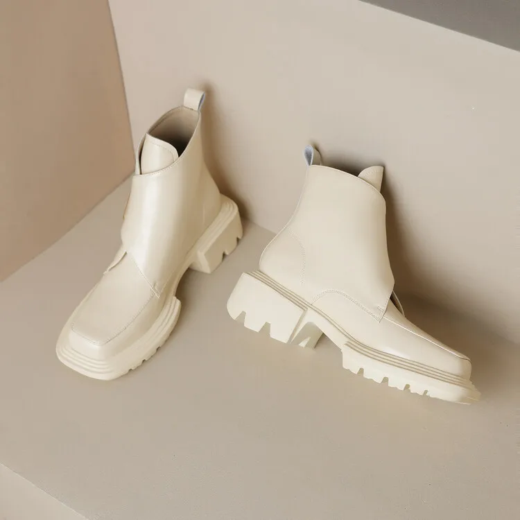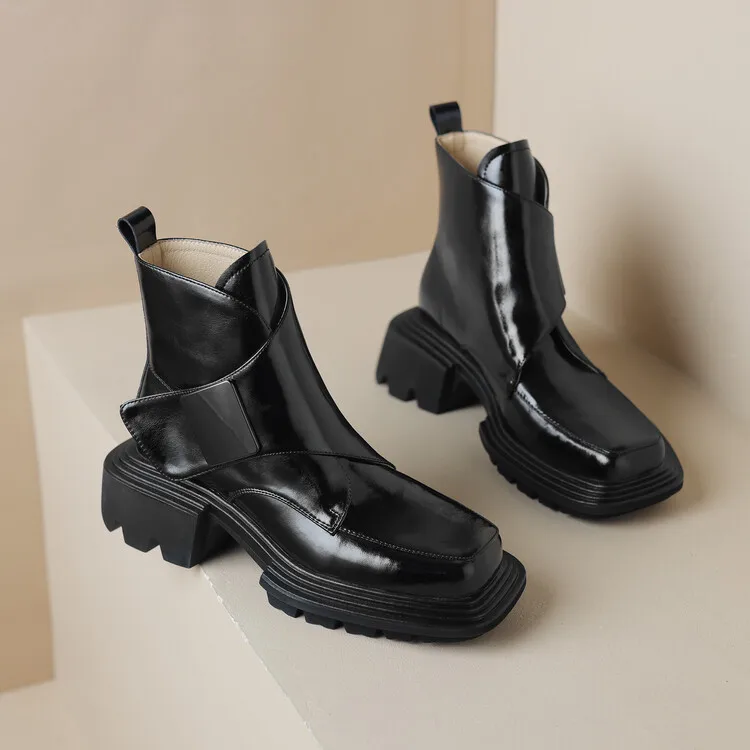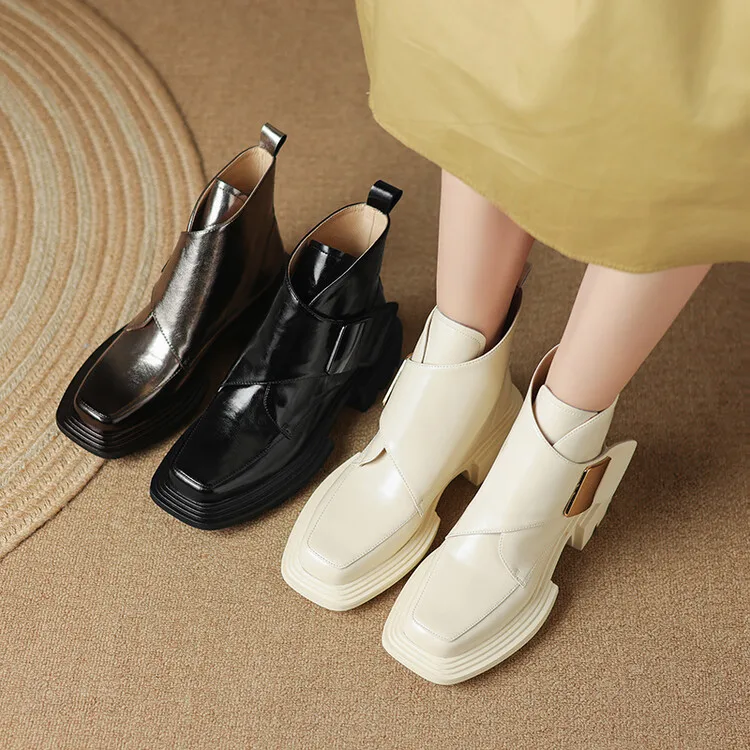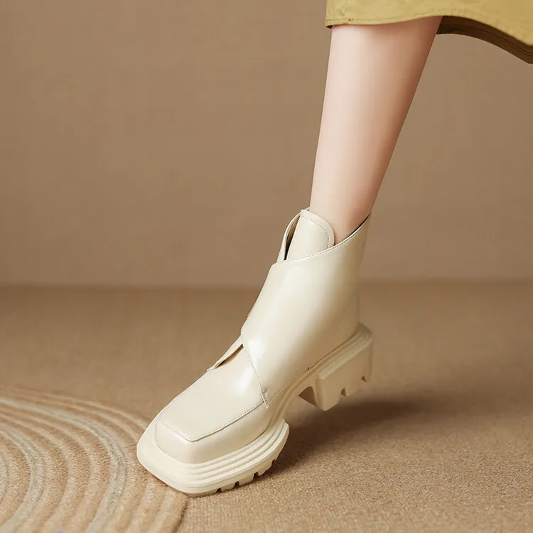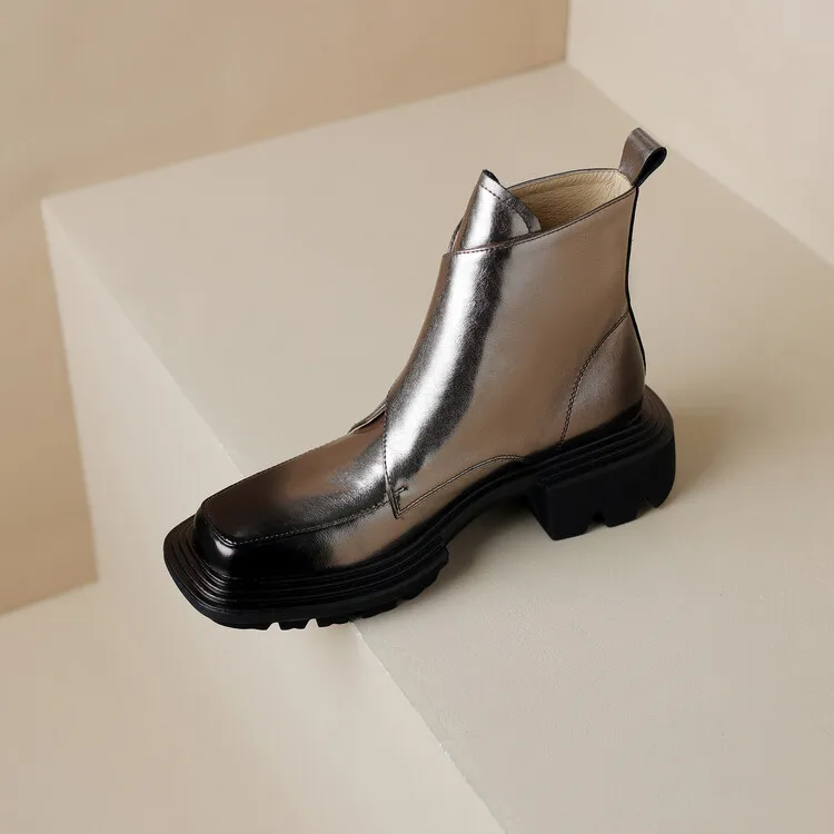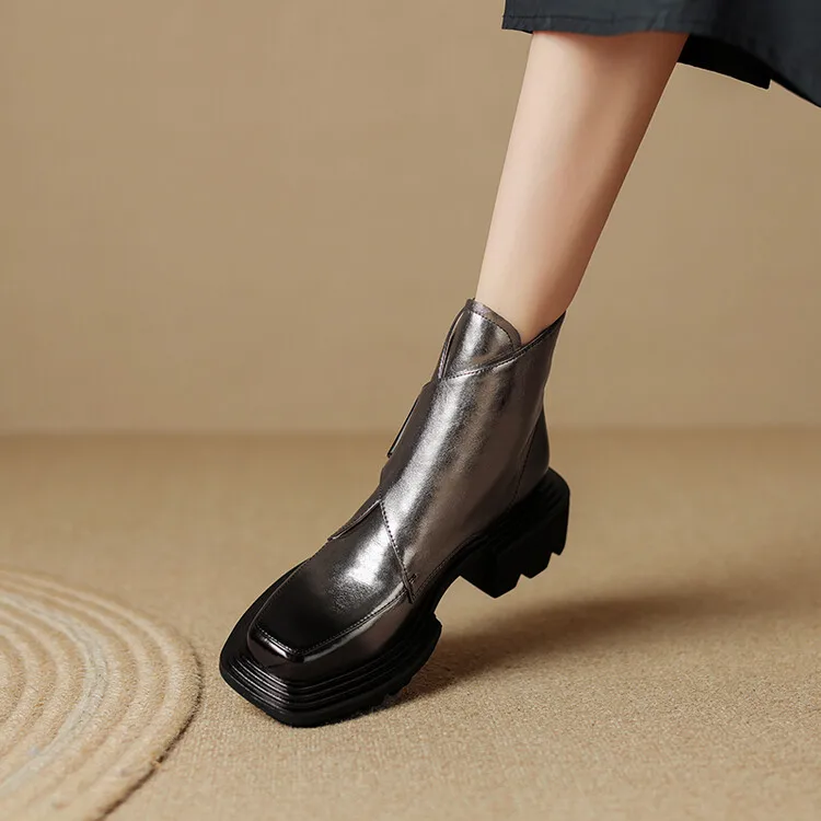 New Winter Split Leather Women Boots Square Toe Chunky Heel Platform Boots for Women High Heels Short Boots Concise Ladies Shoes