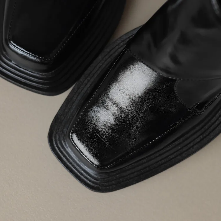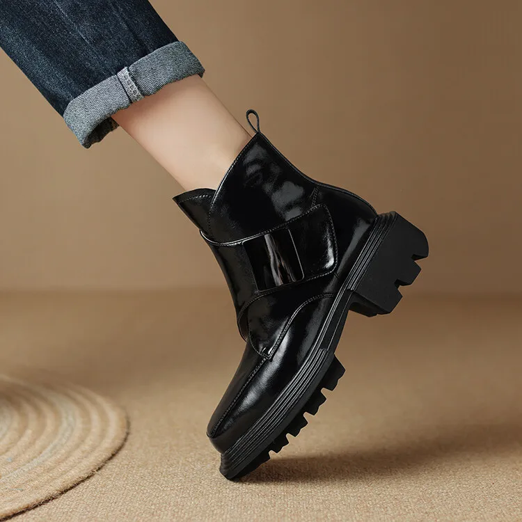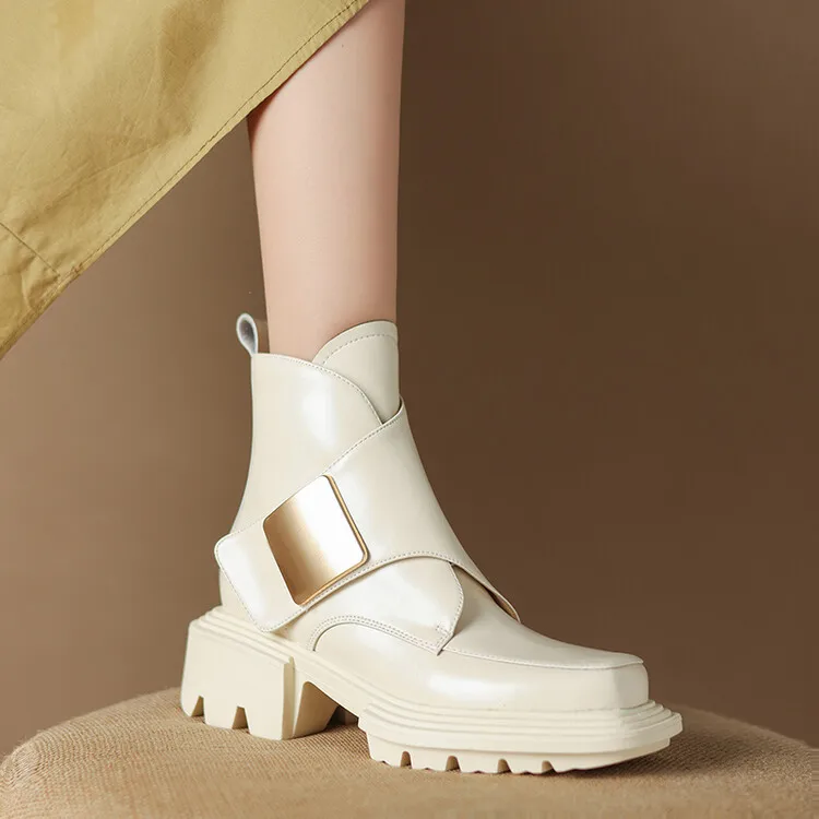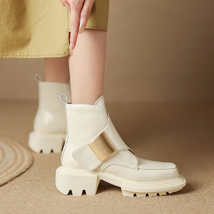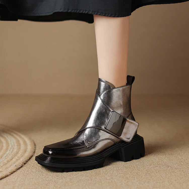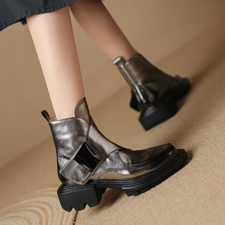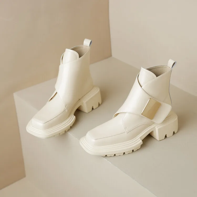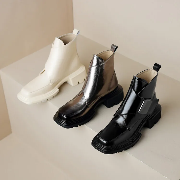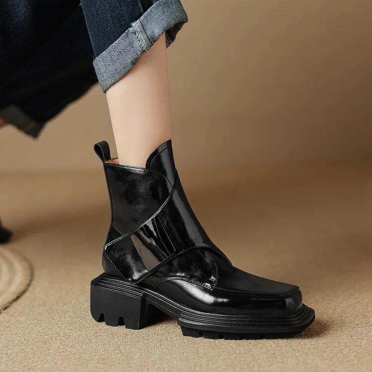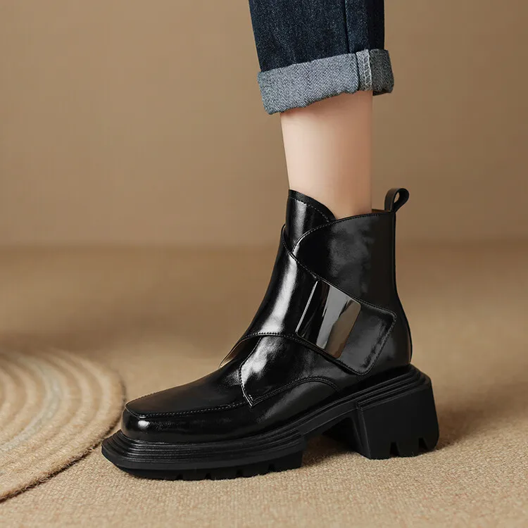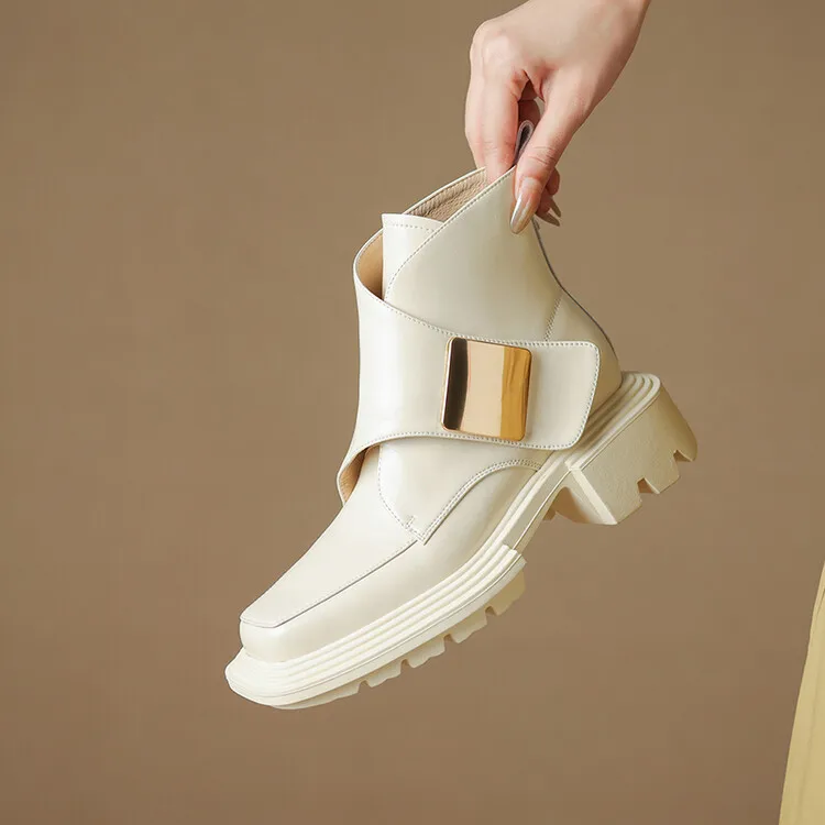 New Winter Split Leather Women Boots Square Toe Chunky Heel Platform Boots for Women High Heels Short Boots Concise Ladies Shoes