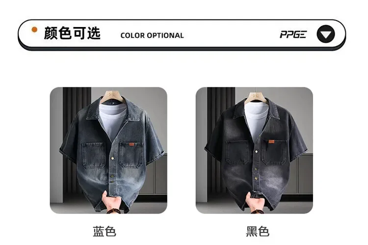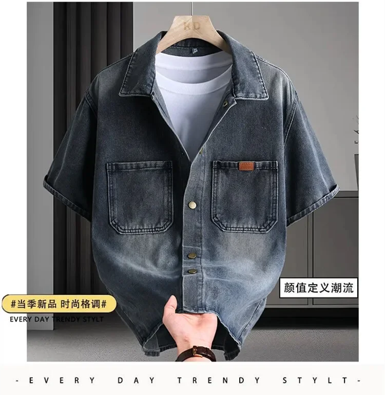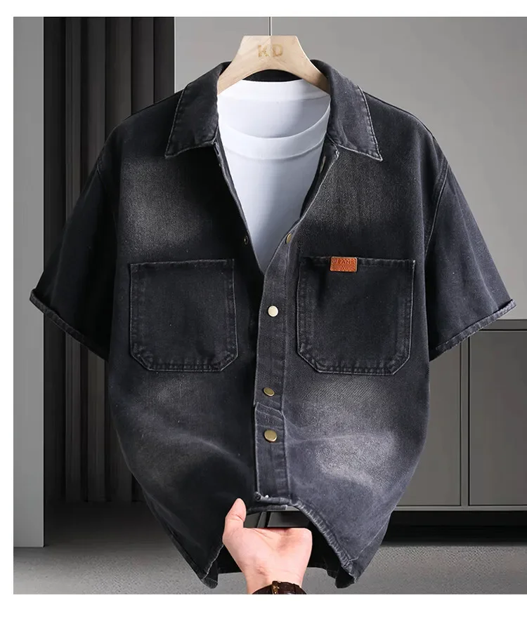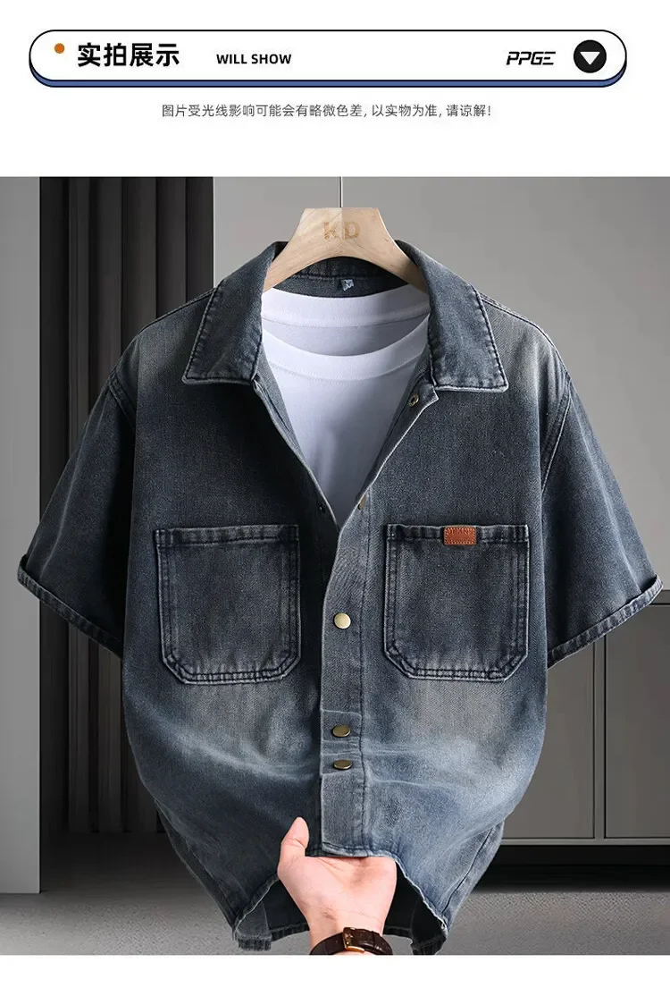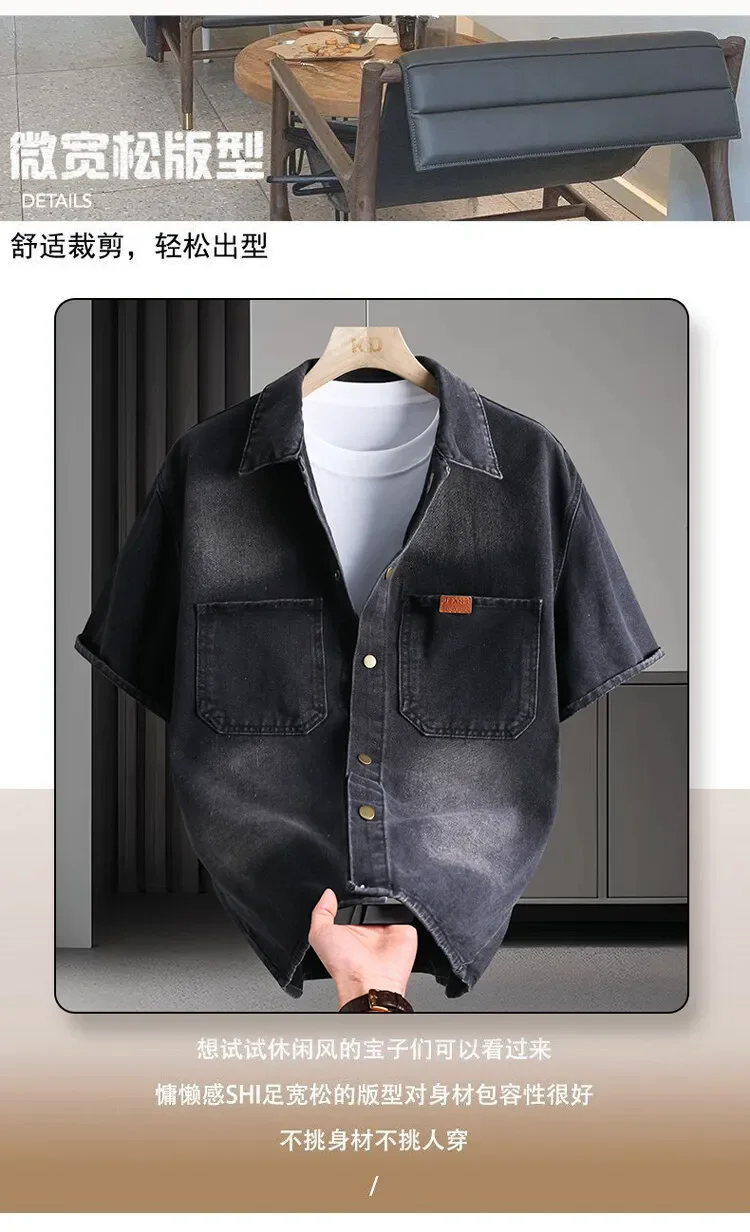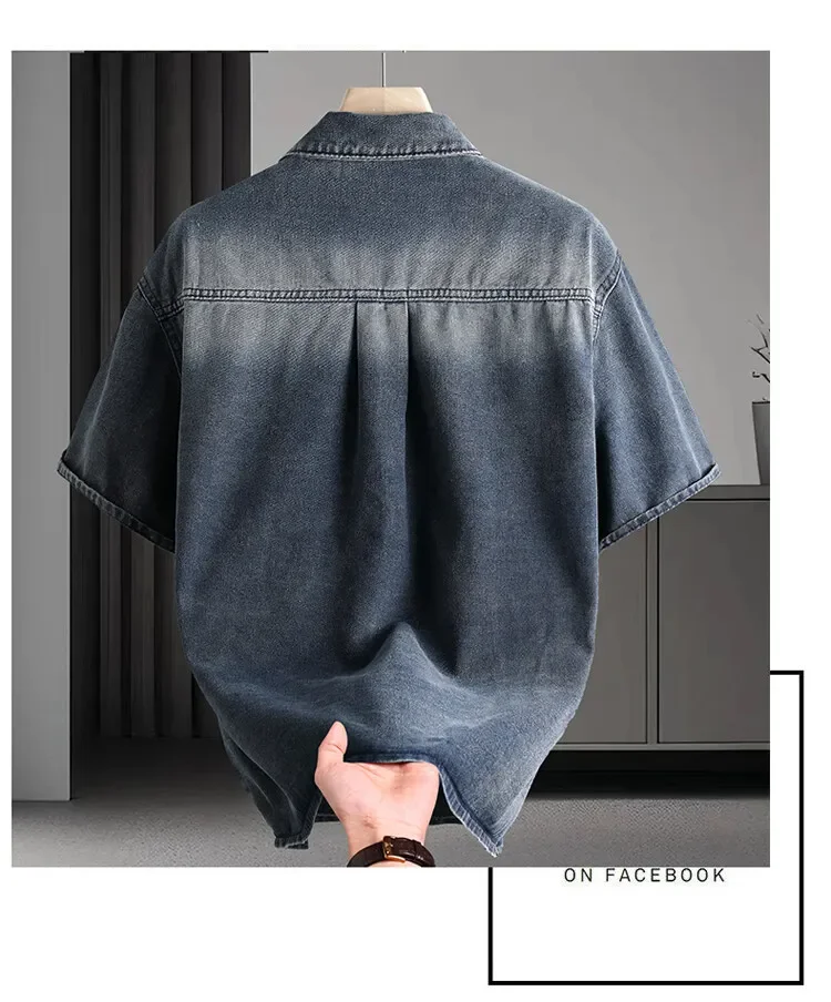 Trendy Men's Solid Denim Shirt Soft & Breathable Collar Multi-Pocket Short-Sleeve Casual Shirt Comfortable Men's Versatile Top