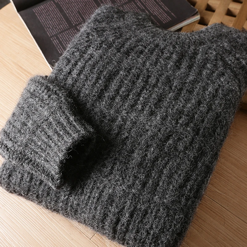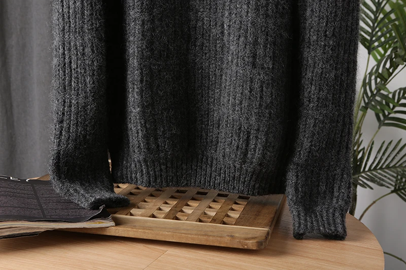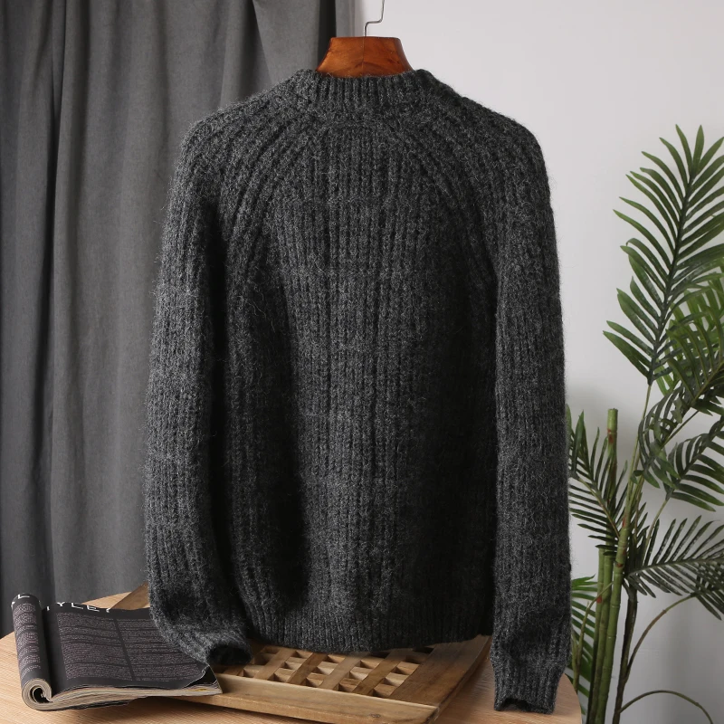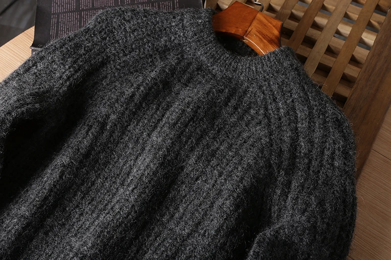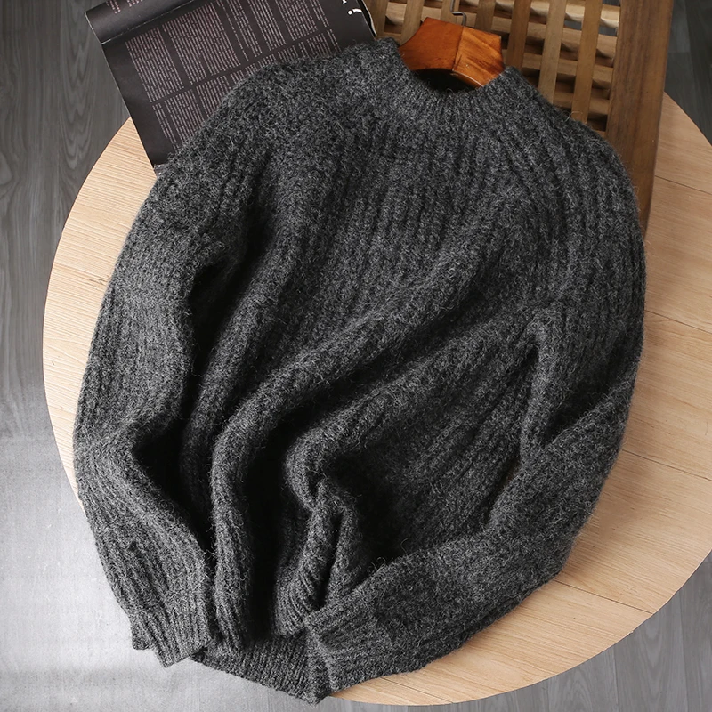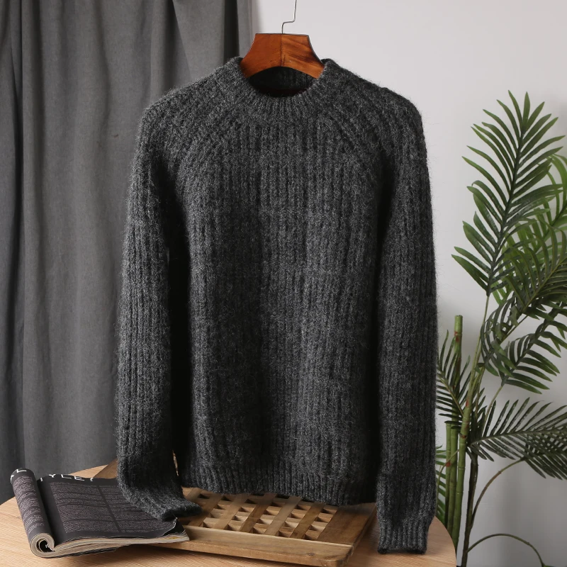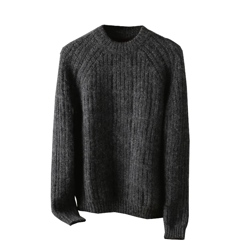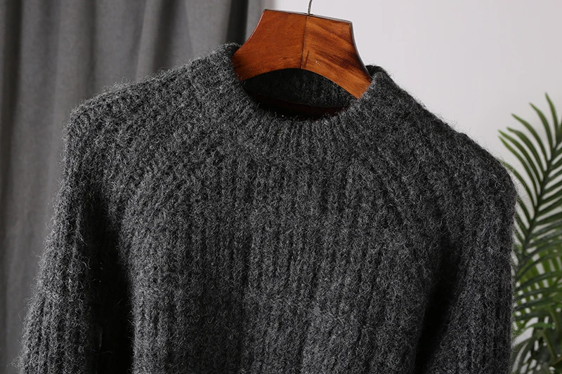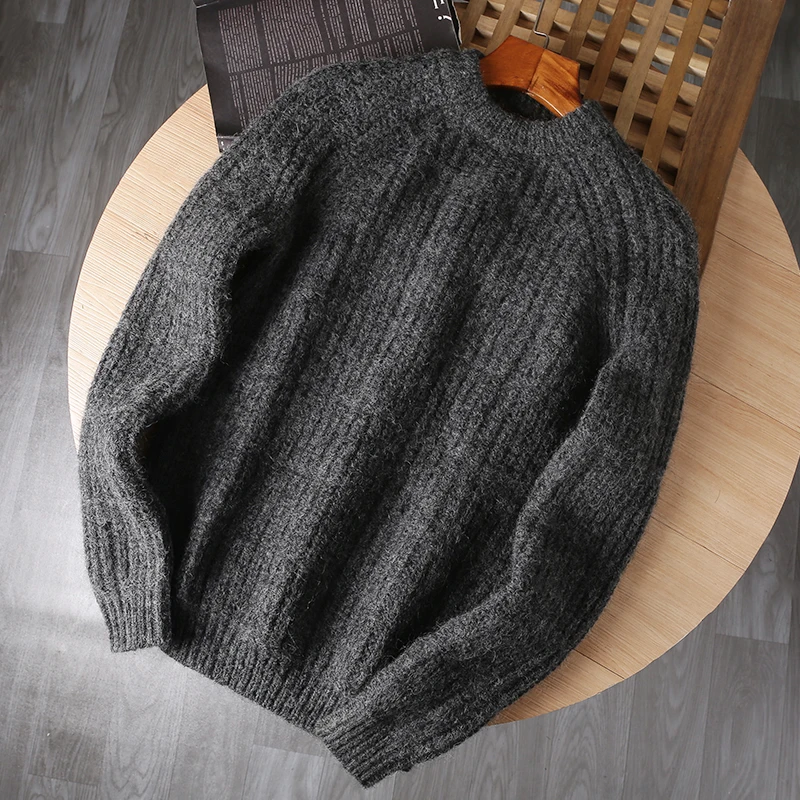 Wool Mohair Men Pullover Autumn Winter Thickening Warm Knitting Sweater Round Neck Raglan Sleeve Solid Long-Sleeve Casual Tops